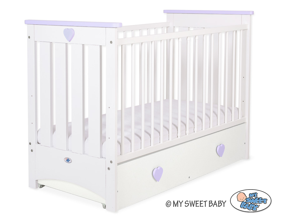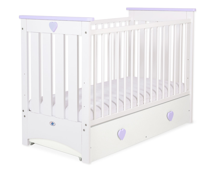 Kleinbaby.nl » Ledikanten 120x60 cm » Ledikanten 120x60cm met lades » Ledikant met Lade Collectie Lorenzo Wit » Ledikant met Lade Lorenzo MAXI Wit Purper