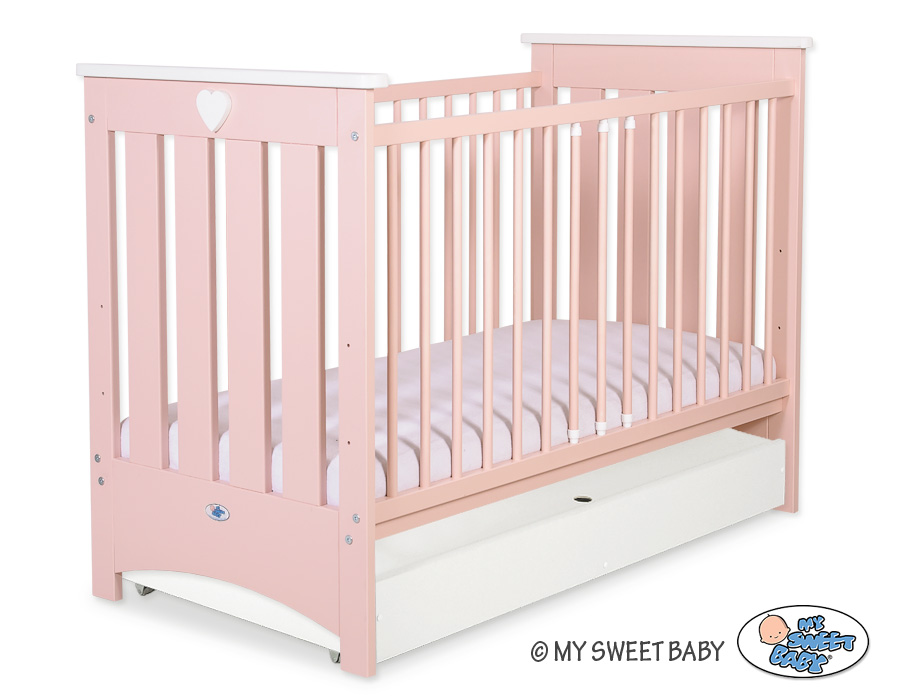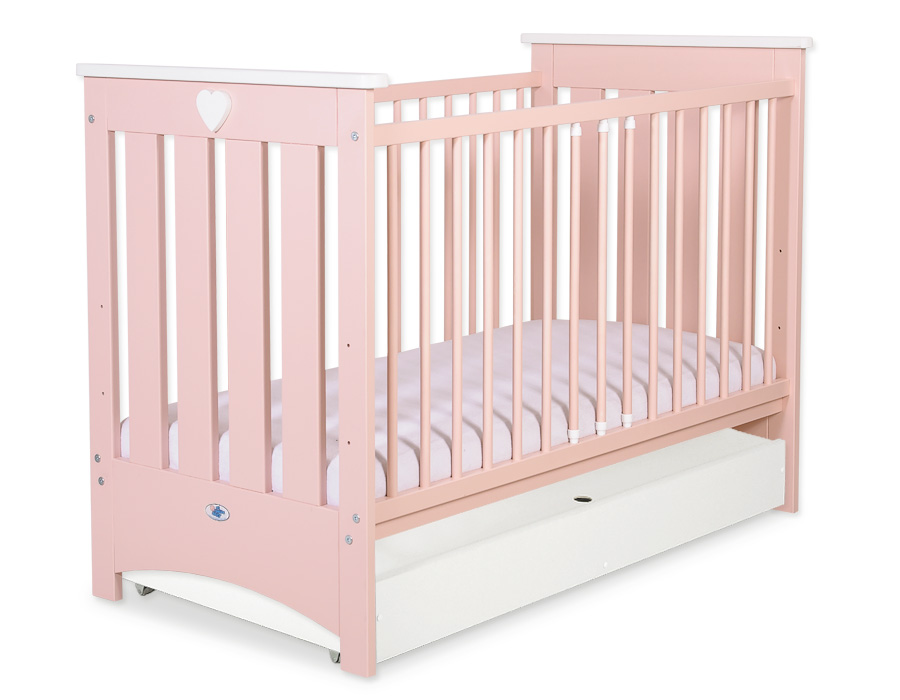 Kleinbaby.nl » Ledikanten 120x60 cm » Ledikanten 120x60cm met lades » Ledikant met Lade Collectie Lorenzo Color » Ledikant met Lade Pastelroze 120x60 cm - Lorenzo STANDARD