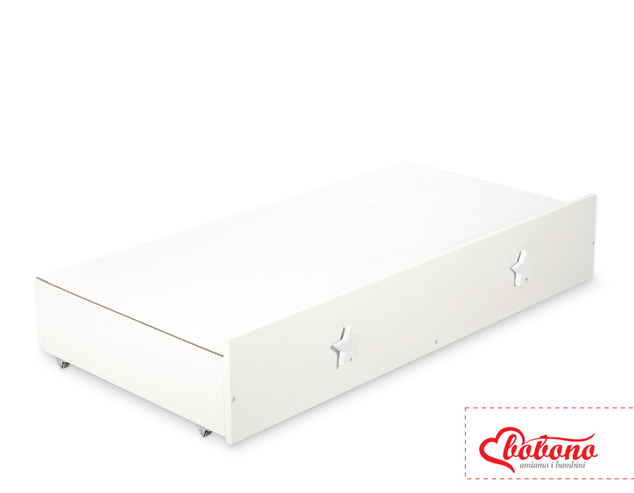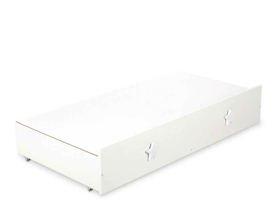 Een lade voor een ledikant van 120x60 cm met decoratieve, handgemaakte handvaten. Biedt meer ruimte voor beddengoed, speelgoed en andere benodigdheden.