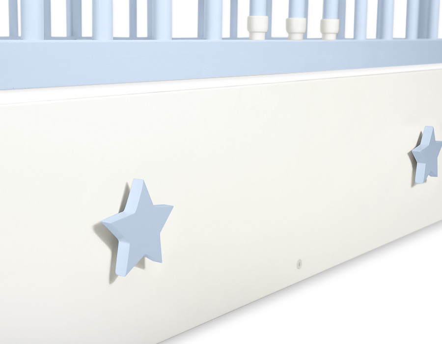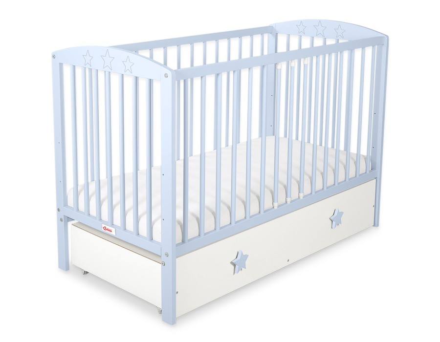 Kleinbaby.nl » Ledikanten 120x60 cm » Ledikanten 120x60cm met lades » Ledikant met Lade Collectie Sterren » Ledikant met Lade Sterren voor Baby 120x60cm Matras Wielen MAXI Wit Sterren