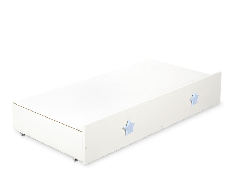 Een lade voor een ledikant van 120x60 cm met decoratieve, handgemaakte handvaten. Biedt meer ruimte voor beddengoed, speelgoed en andere benodigdheden.