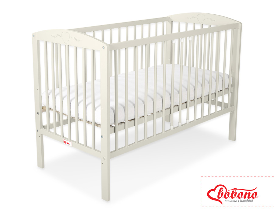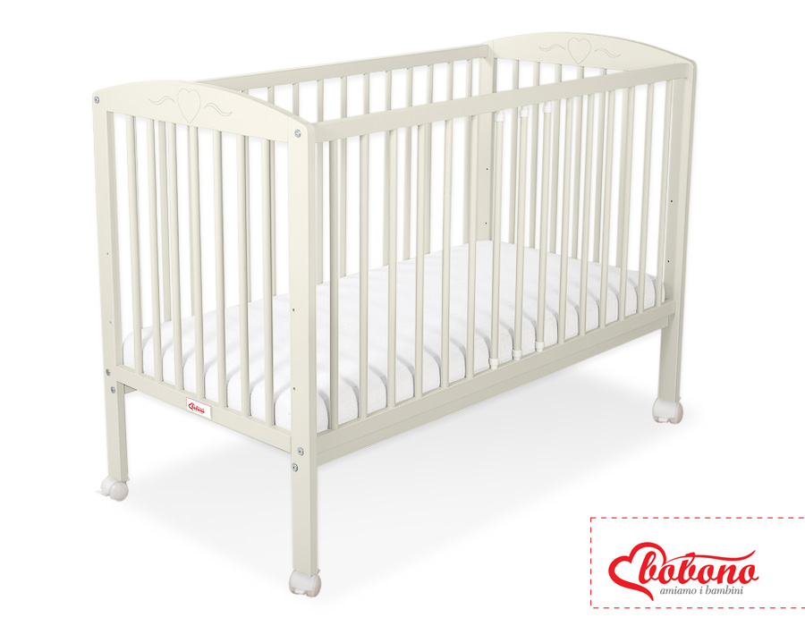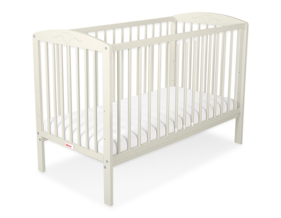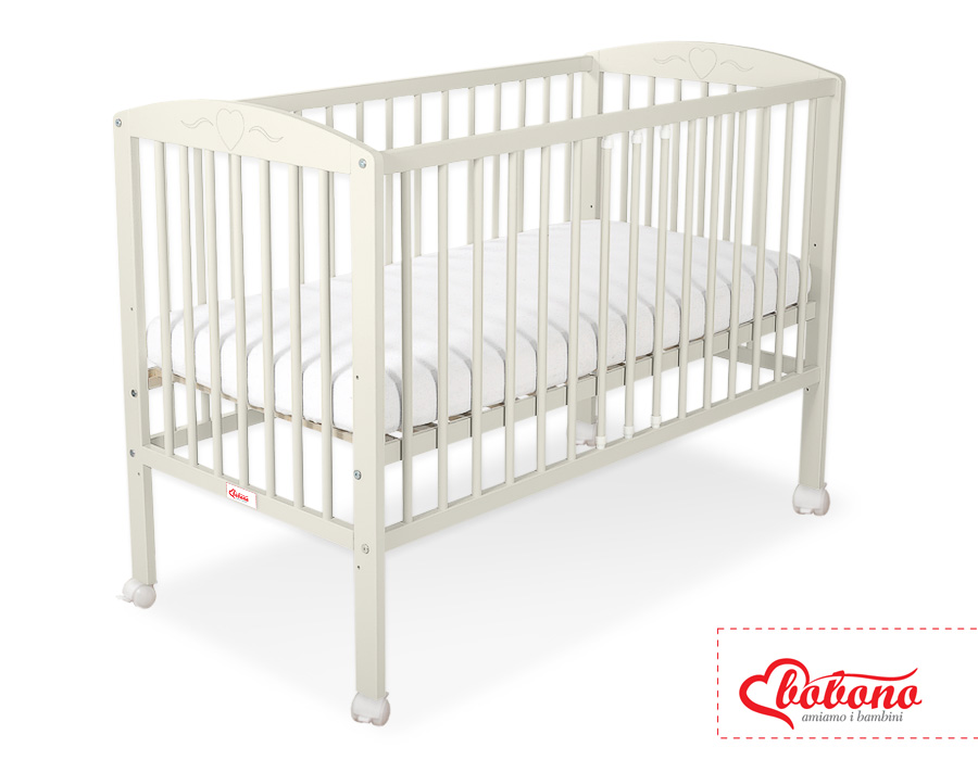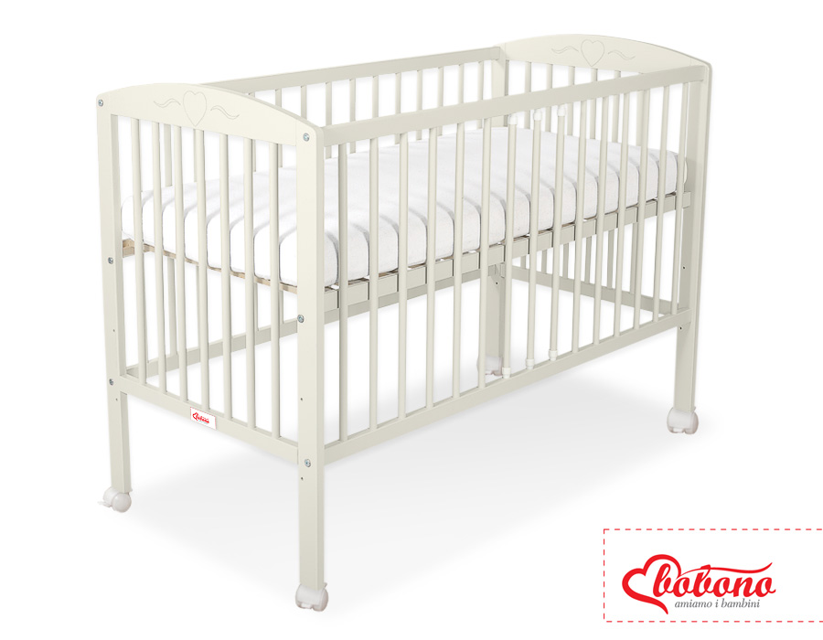 Kleinbaby.nl » Ledikanten 120x60 cm » Ledikant Collectie Harten » Ledikant voor Baby 120x60cm Matras Wielen Ivoor