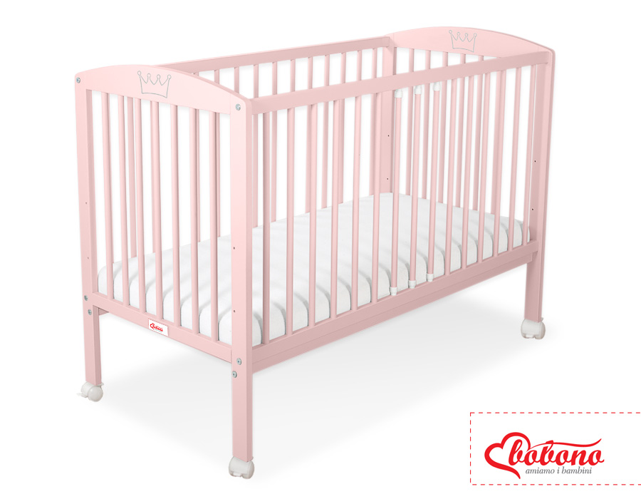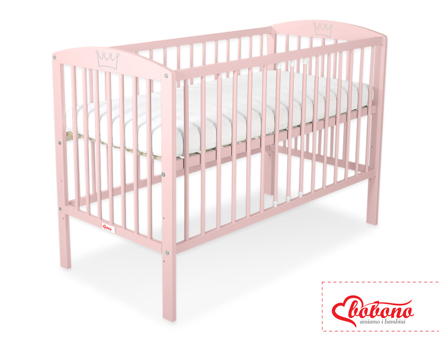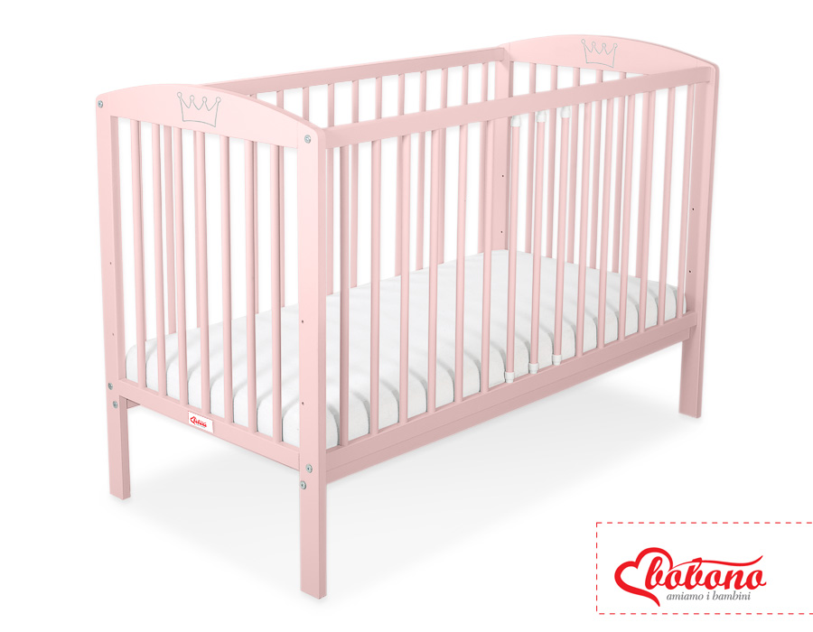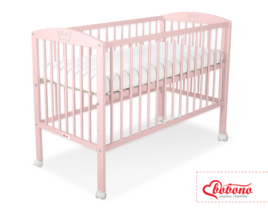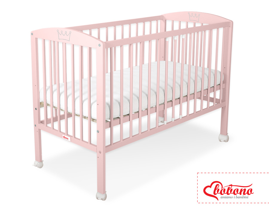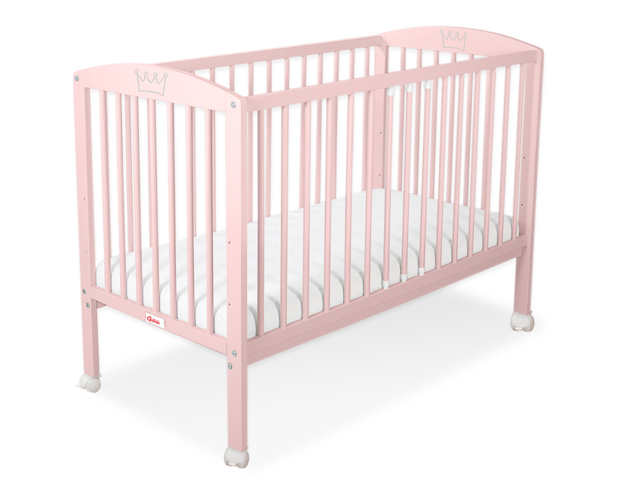 Kleinbaby.nl » Ledikanten 120x60 cm » Ledikant Collectie Little Prince / Princess » Ledikant voor Baby 120x60cm Matras Wielen Poederroze