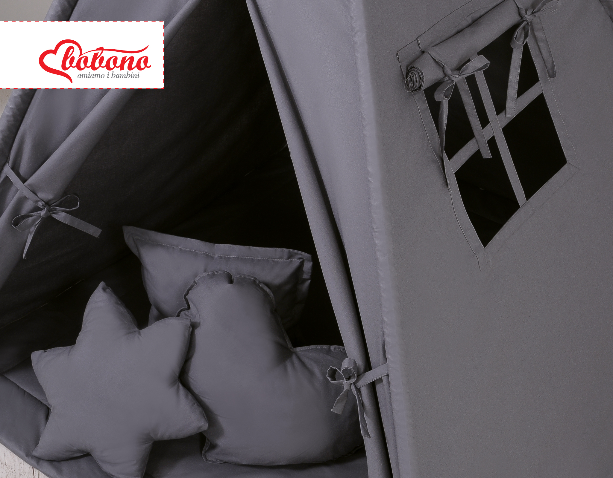 MEGA TIPI SET: Tipi-tent + speelmat + kussens + GRATIS decoratieve veren Antraciet