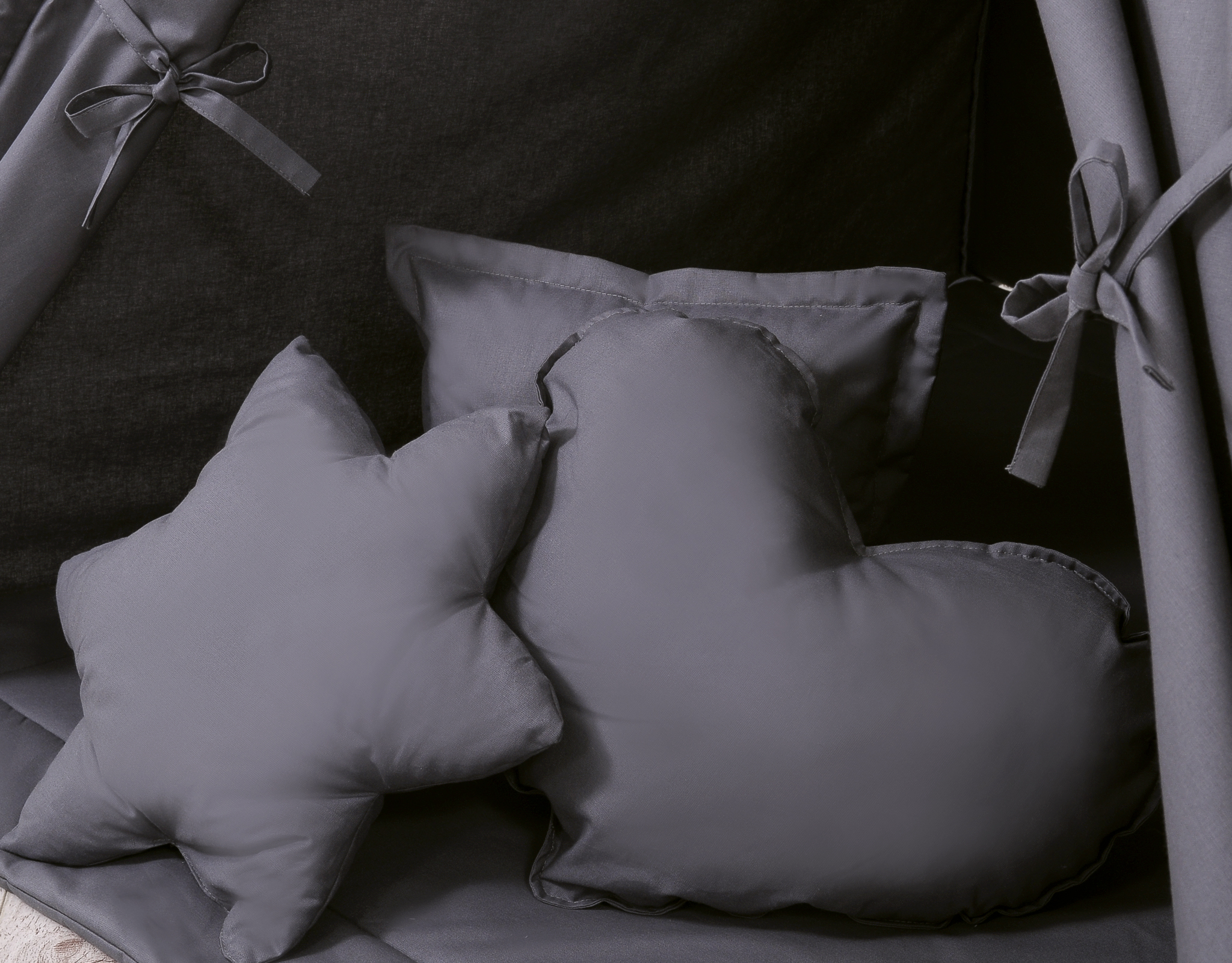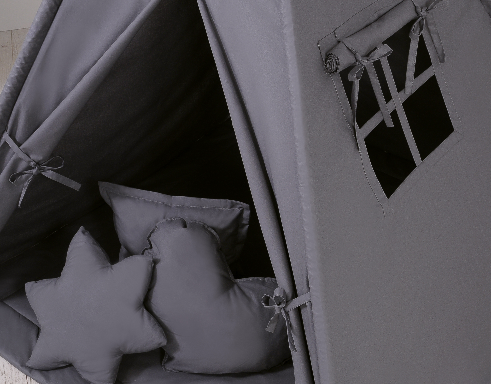 Kleinbaby.nl » Speelgoed Knuffels » Tipi-tenten » Mega Set: Tipi-tent + speelmat + kussens » MEGA TIPI SET: Tipi-tent + speelmat + kussens + GRATIS decoratieve veren Antraciet