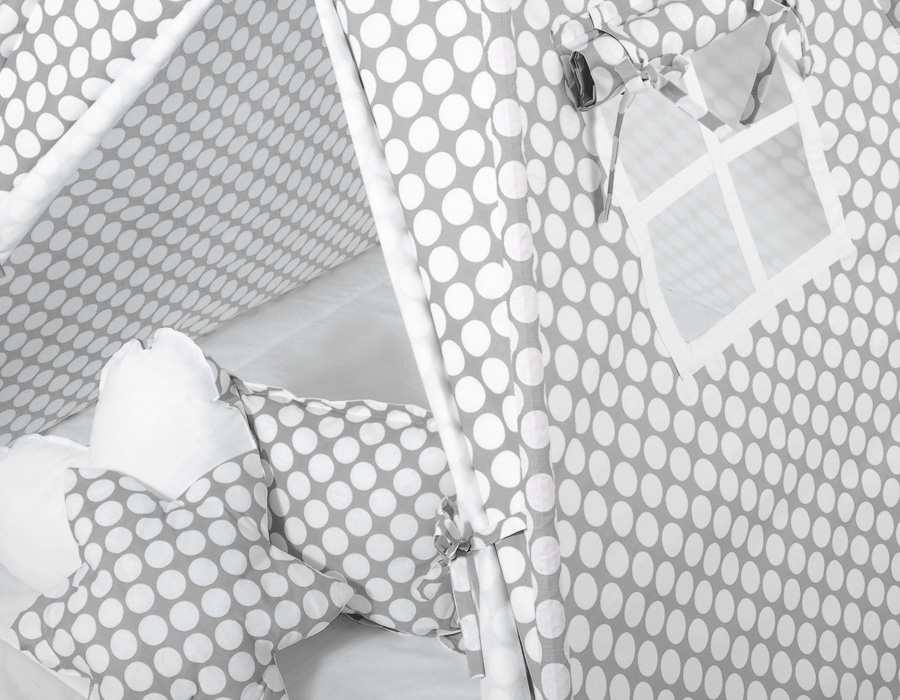 Kleinbaby.nl » Speelgoed Knuffels » Tipi-tenten » Mega Set: Tipi-tent + speelmat + kussens » MEGA TIPI SET: Tipi-tent + speelmat + kussens + GRATIS decoratieve veren Grijs