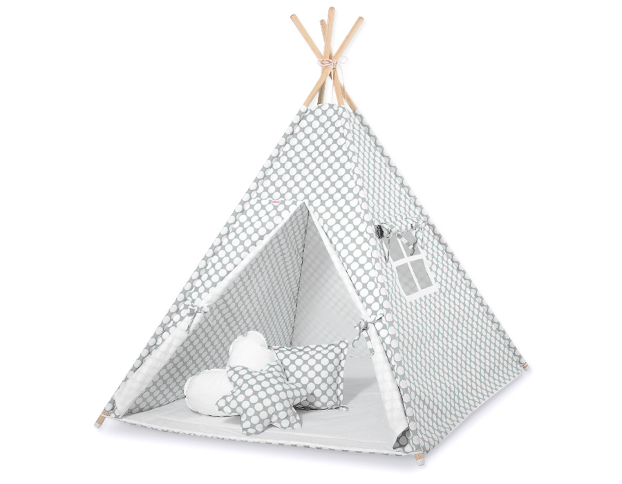 MEGA TIPI SET: Tipi-tent + speelmat + kussens + GRATIS decoratieve veren Grijs