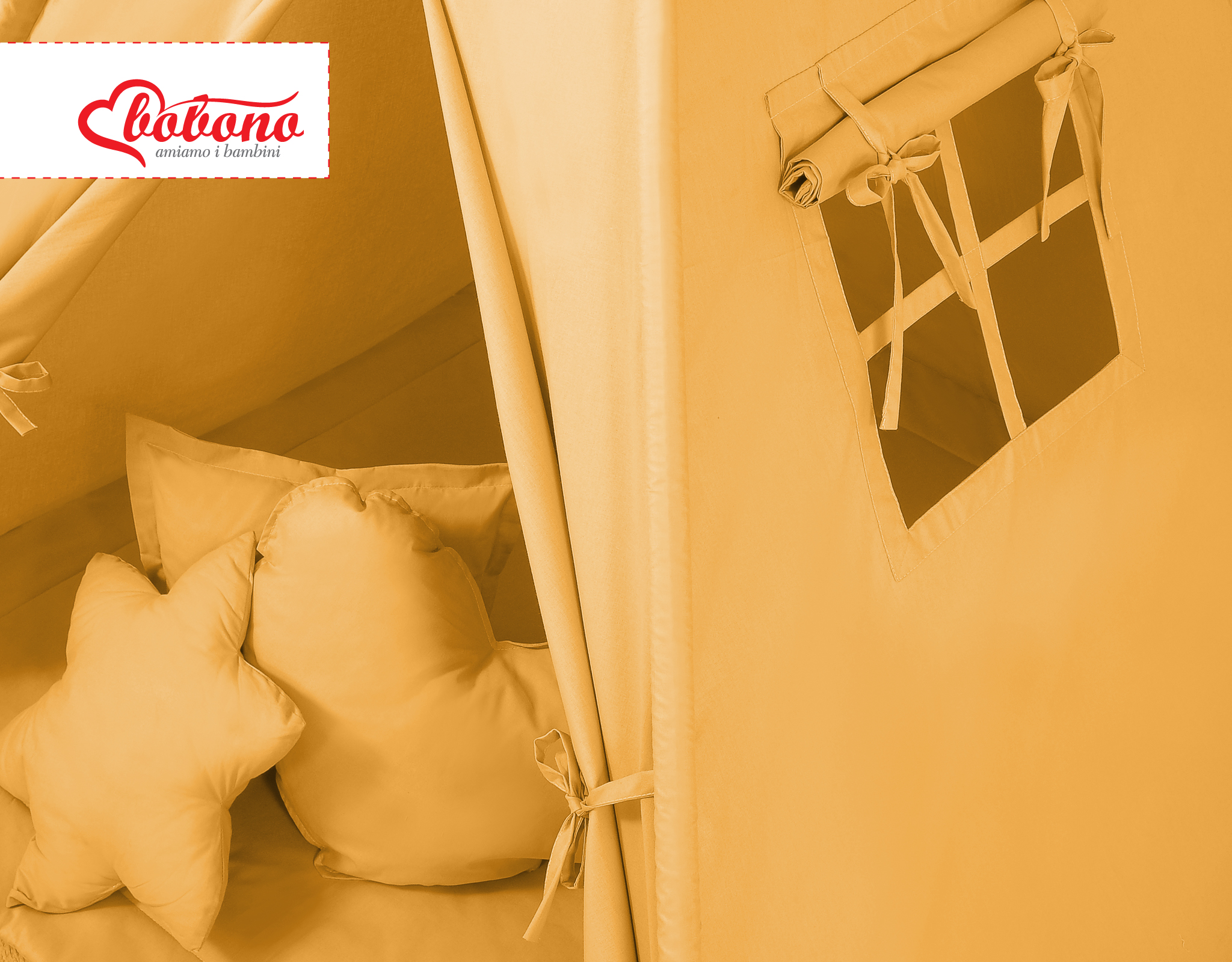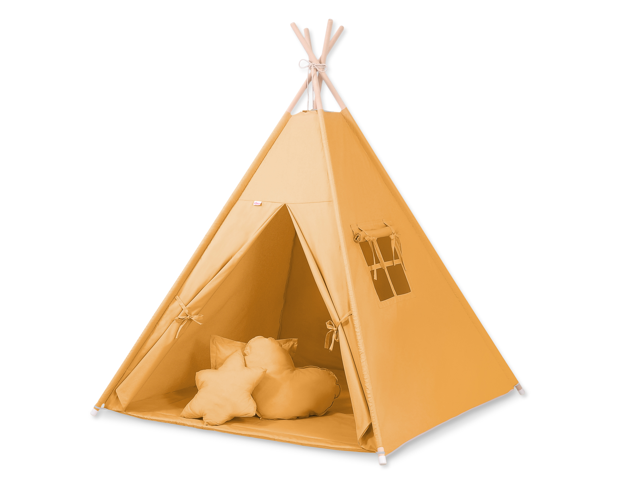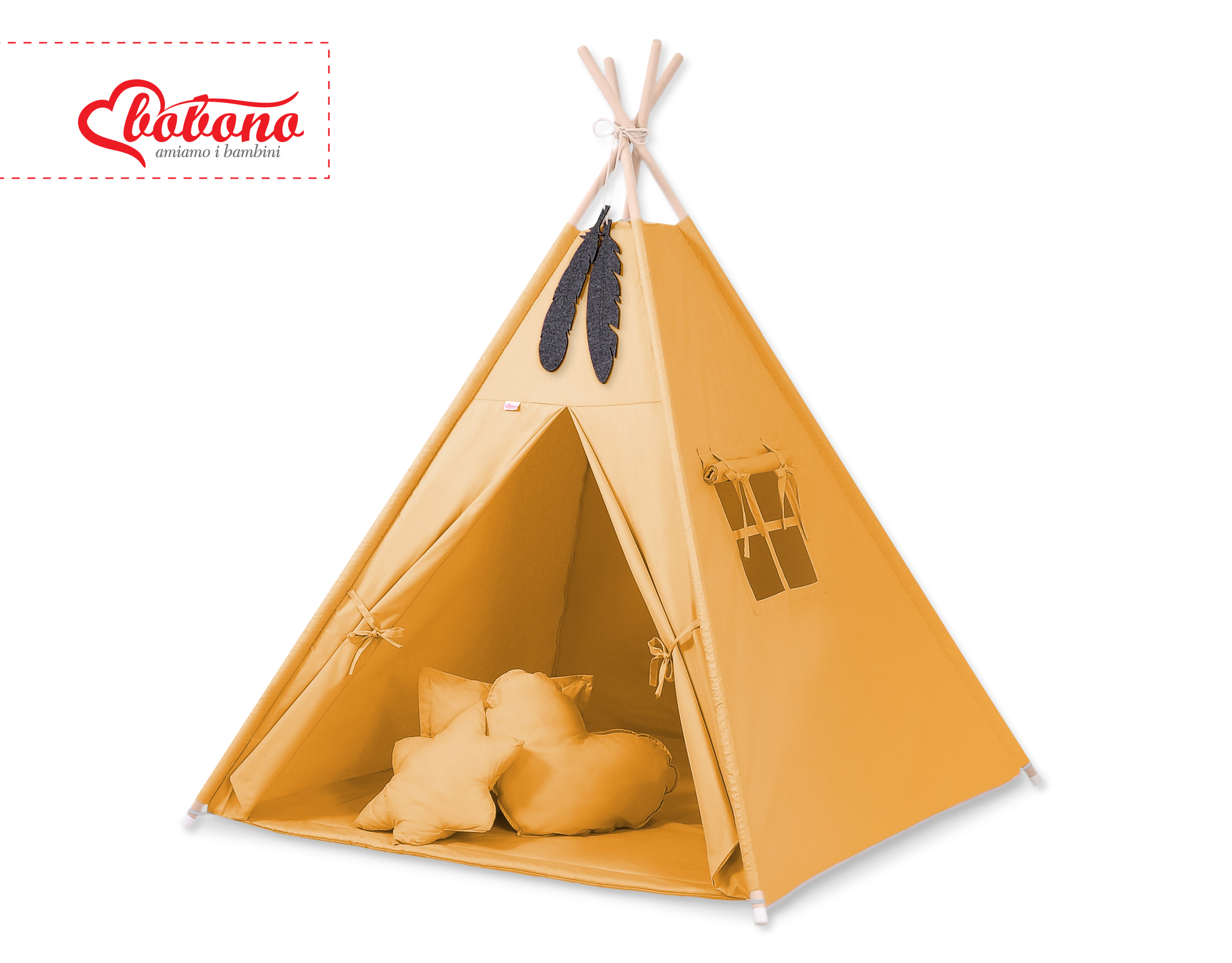 MEGA TIPI SET: Tipi-tent + speelmat + kussens + GRATIS decoratieve veren Honing Mosterd