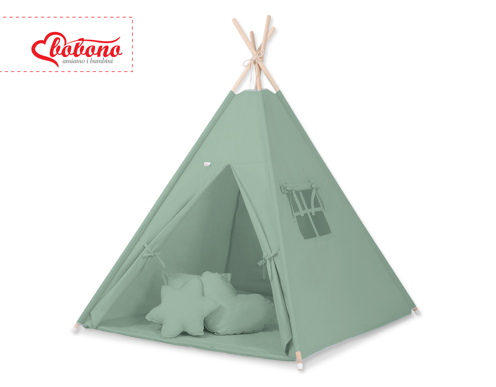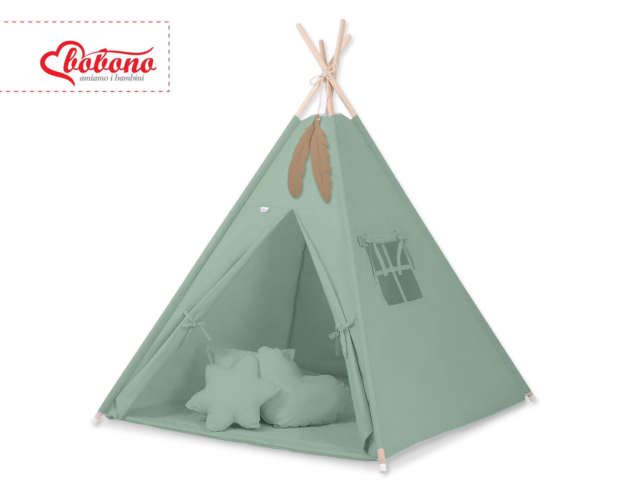 MEGA TIPI SET: Tipi-tent + speelmat + kussens + GRATIS decoratieve veren Pastelgroen