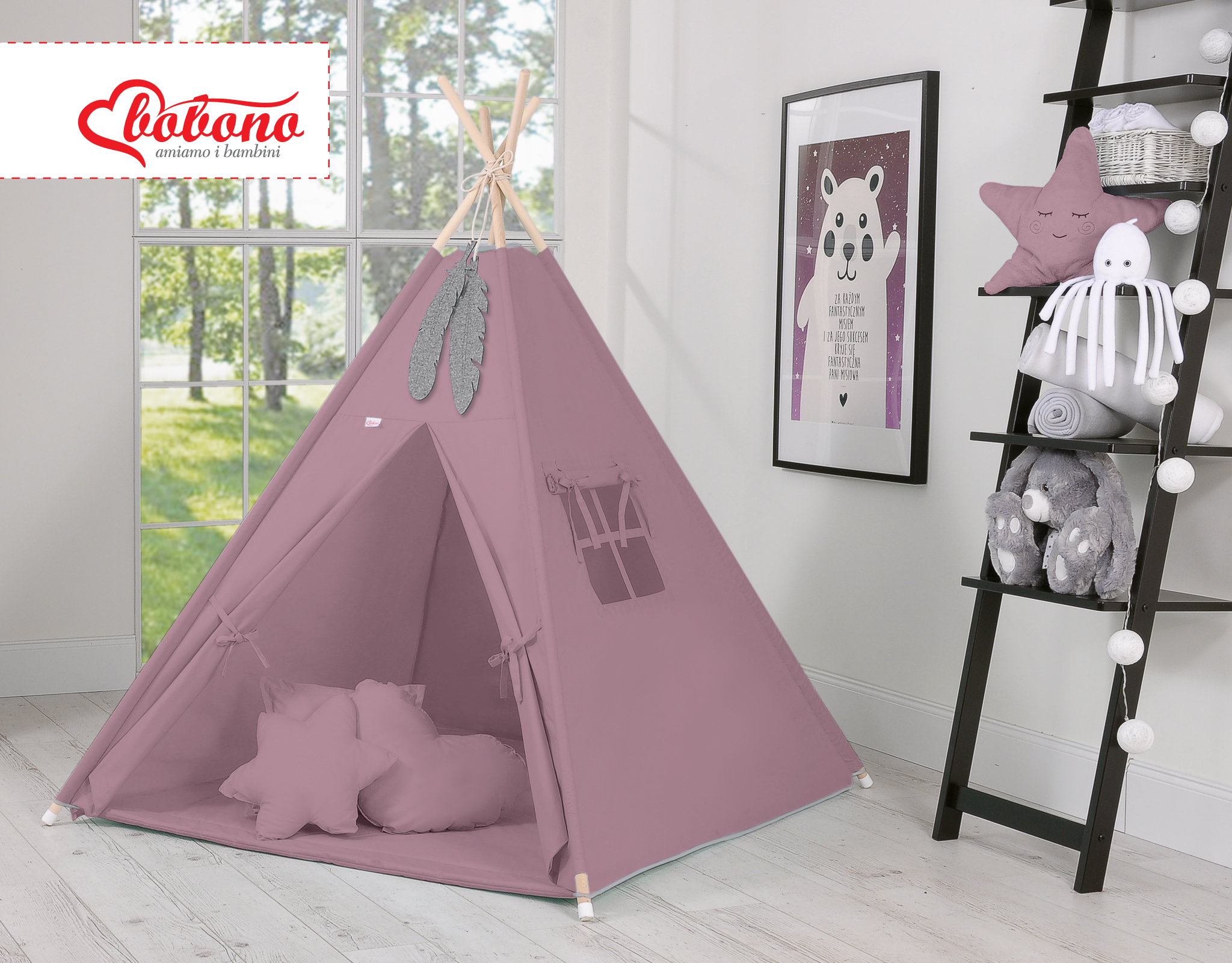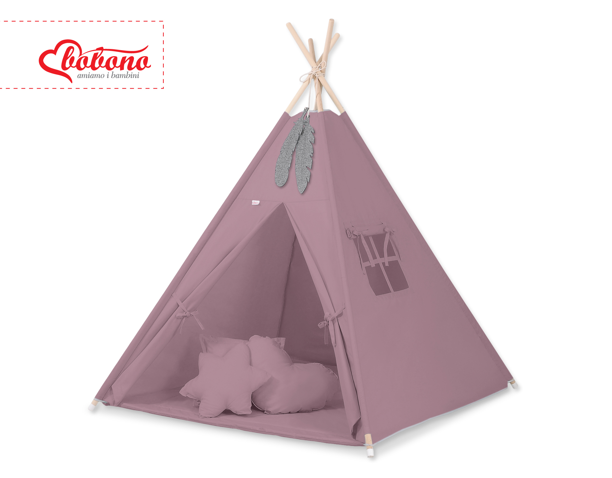MEGA TIPI SET: Tipi-tent + speelmat + kussens + GRATIS decoratieve veren Pastelviolet