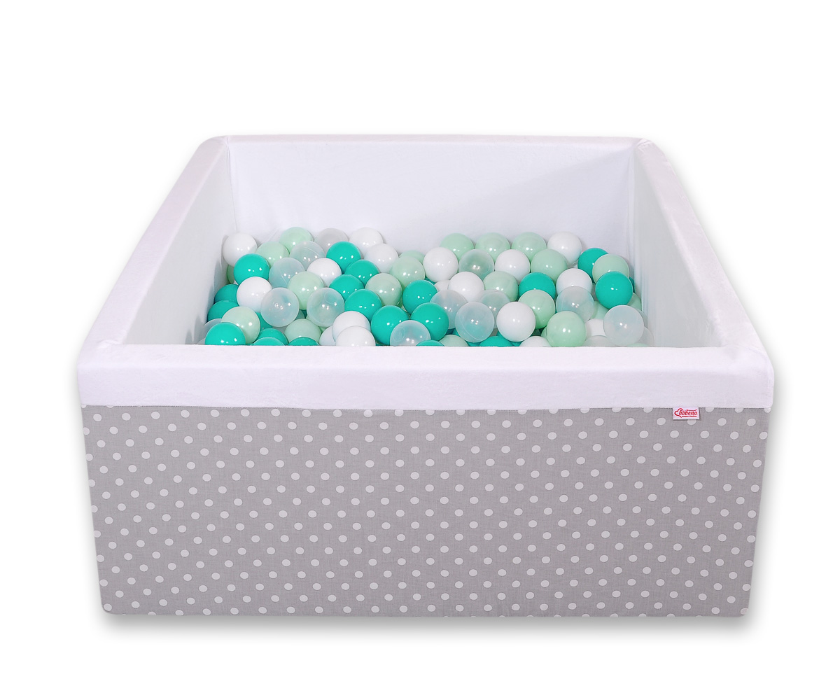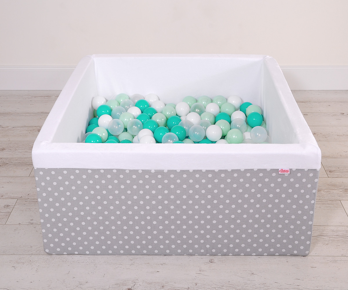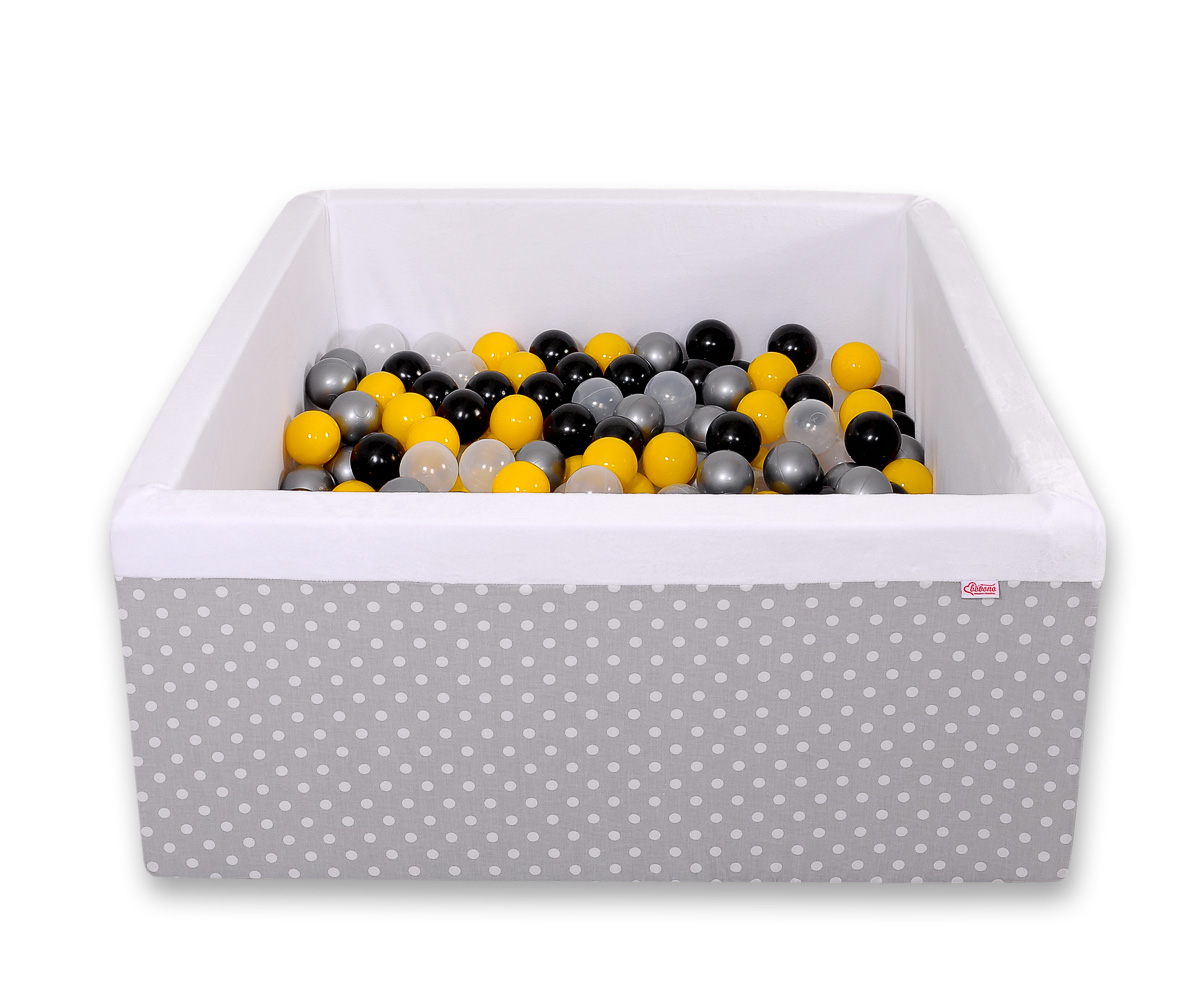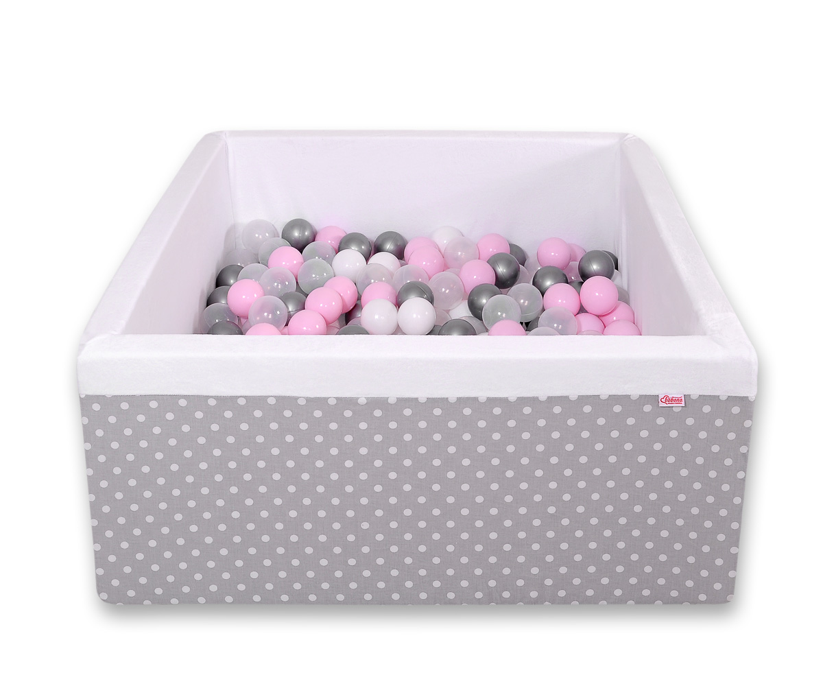 Kleinbaby.nl » Speelgoed Knuffels » Ballenbakken » Ballenbak met ballen (eigen kleurenmix) » Minky Ballenbak met Ballen 200 st Grijs Polkaprikker