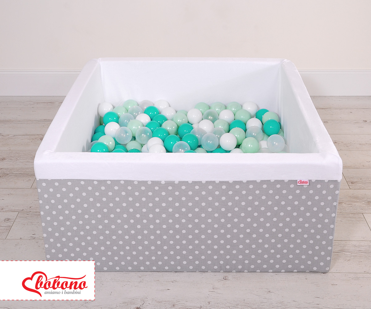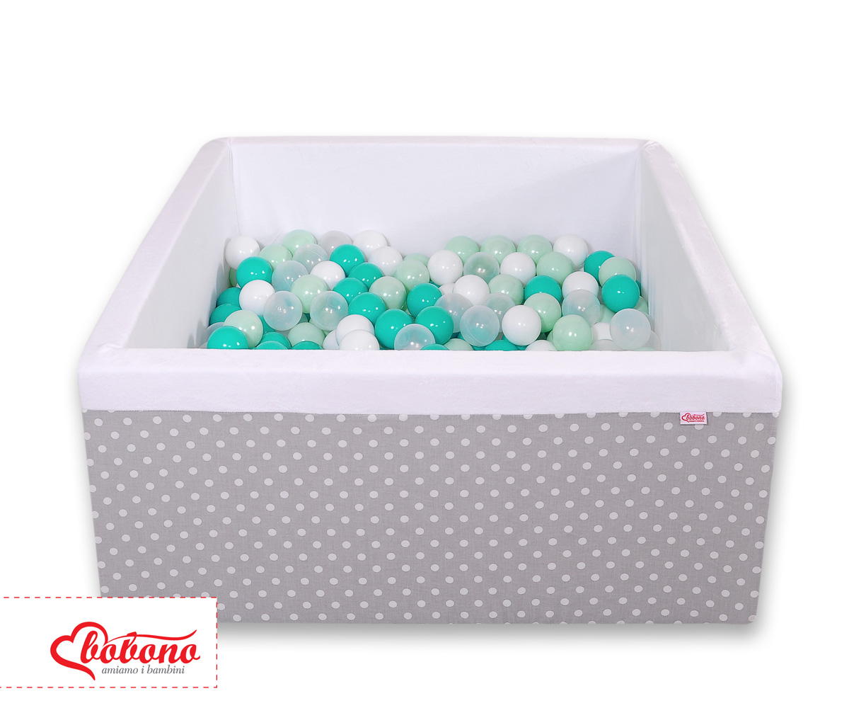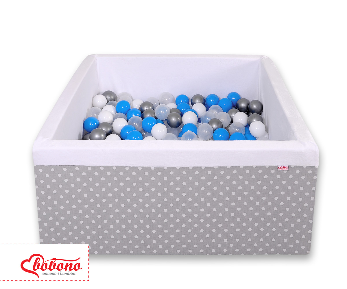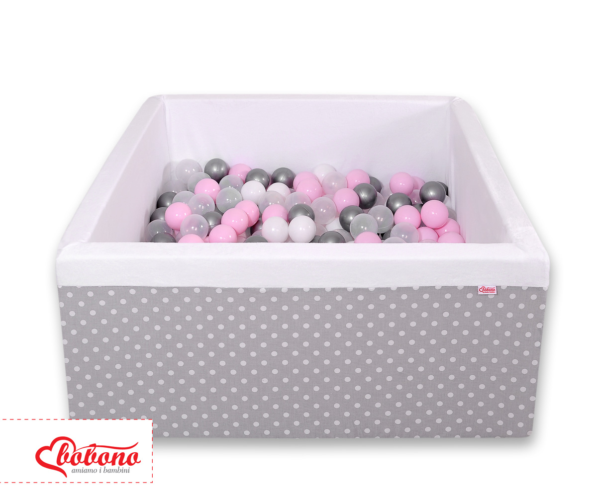 Kleinbaby.nl » Speelgoed Knuffels » Ballenbakken » Ballenbak met ballen (eigen kleurenmix) » Minky Ballenbak met Ballen 200 st Grijs Polkaprikker