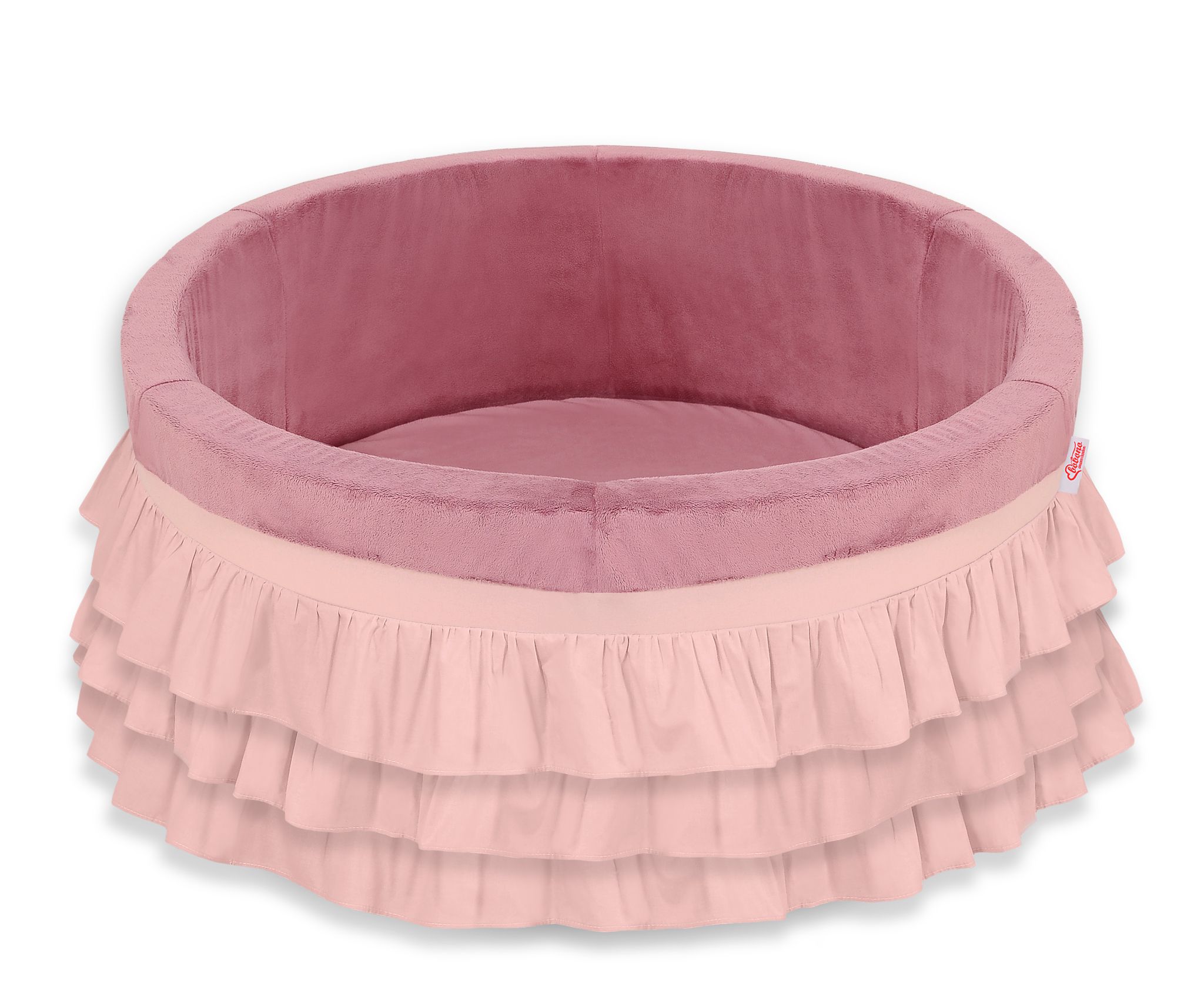 De bak is rond, met een diameter van 90 cm. De hoogte van de rand is 40 cm. Gemaakt van zacht schuim. Afneembare hoes met ritssluiting gemaakt van 100% katoen en zachte minky fleece.