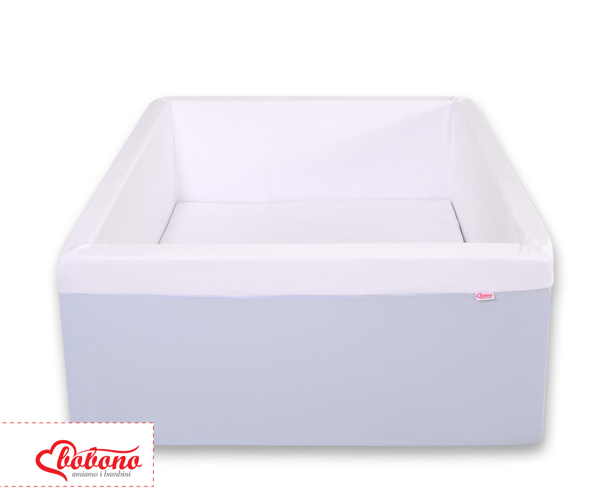 De bak is rond, met een diameter van 90 cm. De hoogte van de rand is 40 cm. Gemaakt van zacht schuim. Afneembare hoes met ritssluiting gemaakt van 100% katoen en zachte minky fleece.