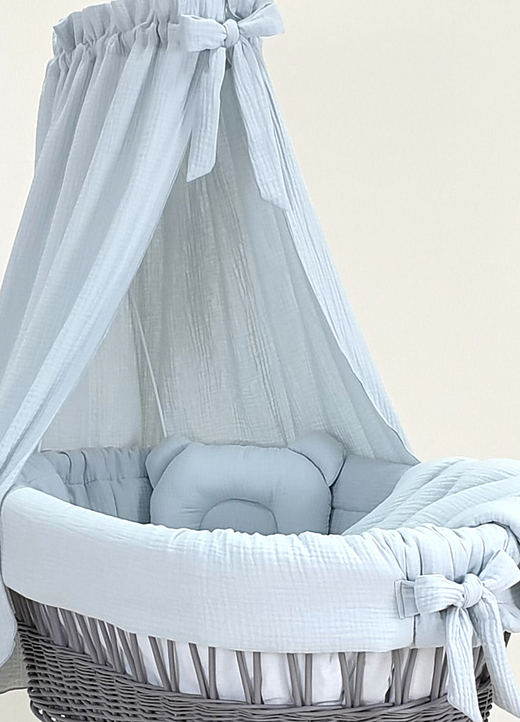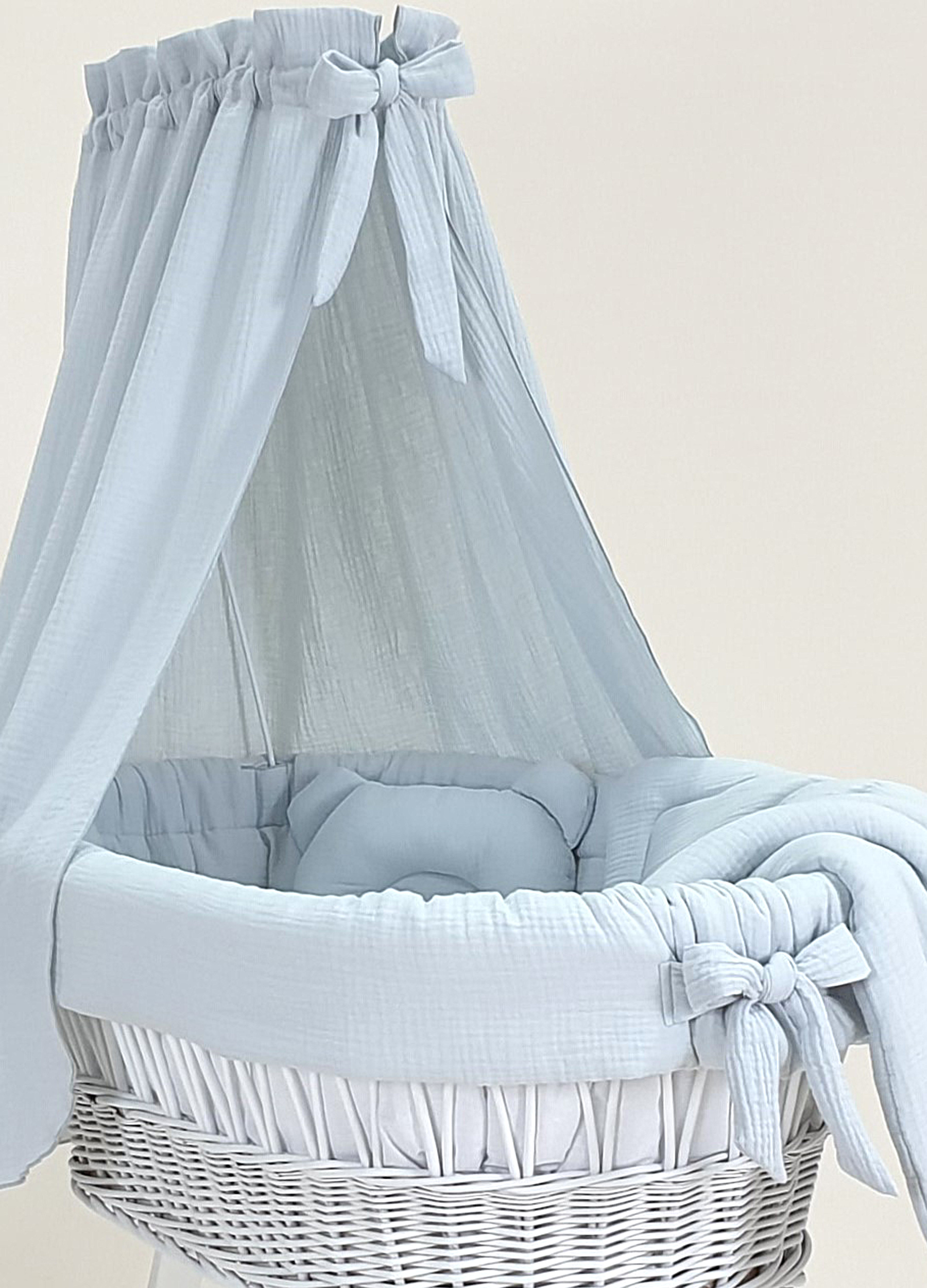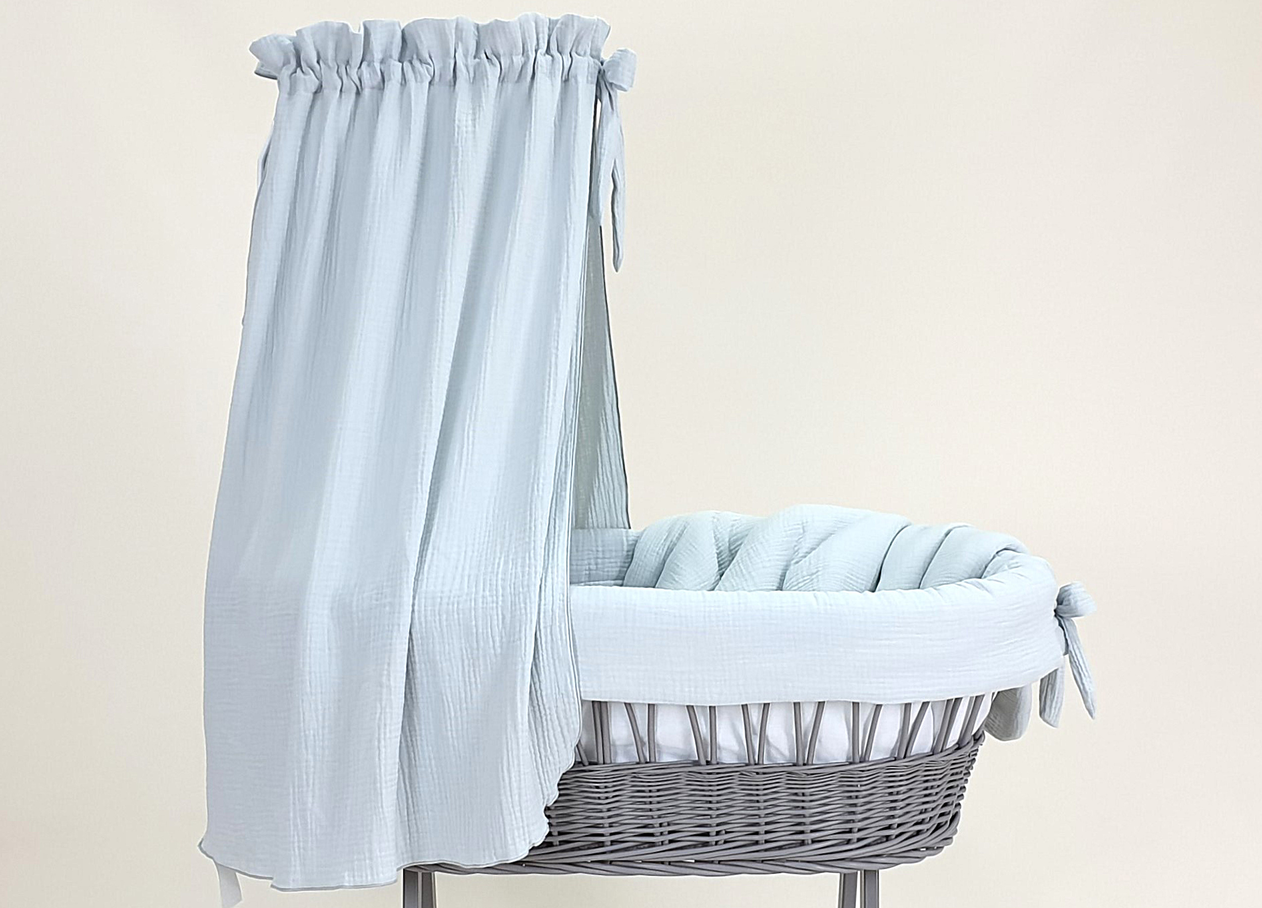 Wieg bekleding - gemaakt van 100% katoen-mousseline, passend voor rieten wiegen van 55-60 × 90 × 30 cm (B × L × H), bovenrandomtrek 250-260 cm.
