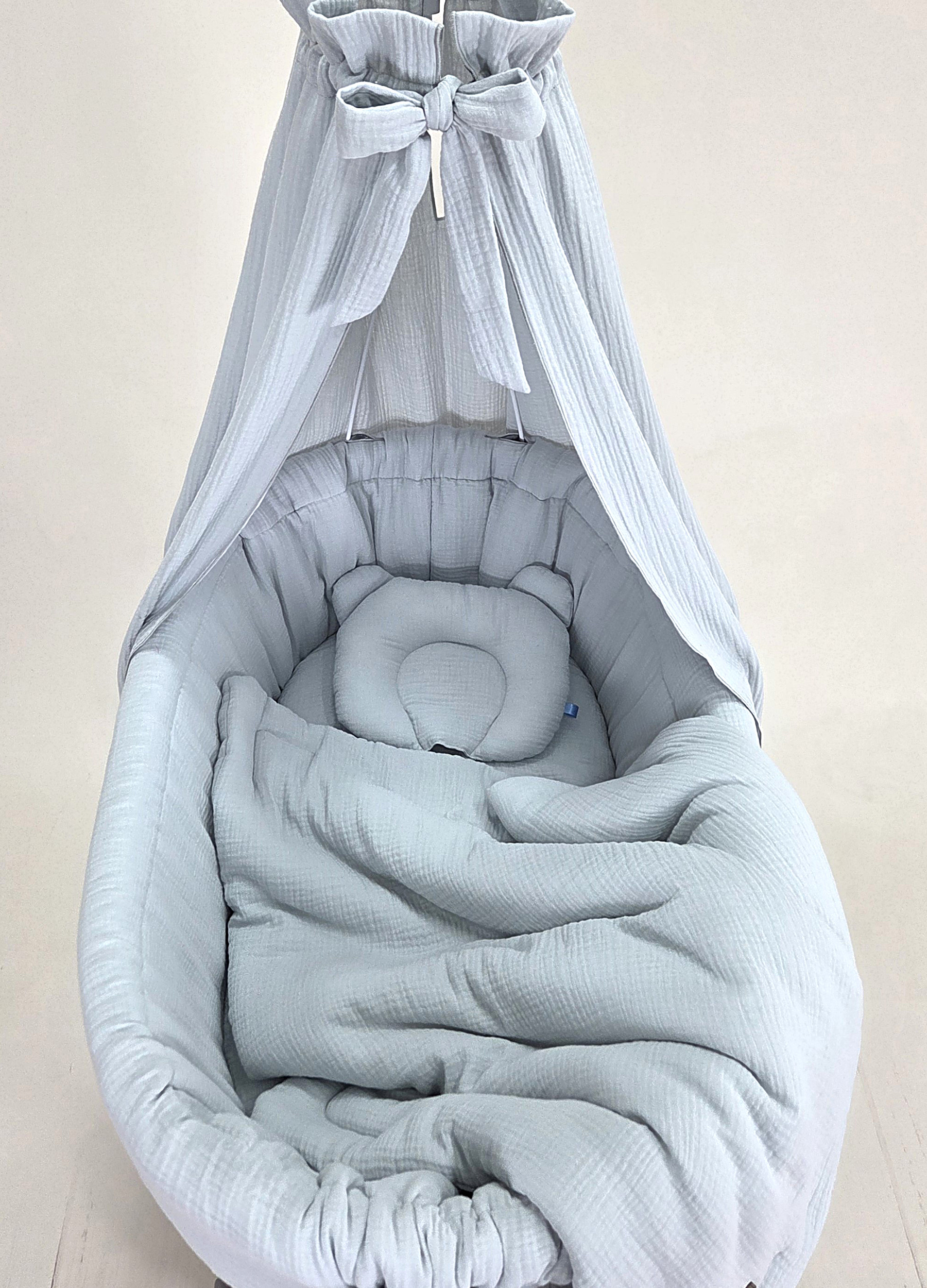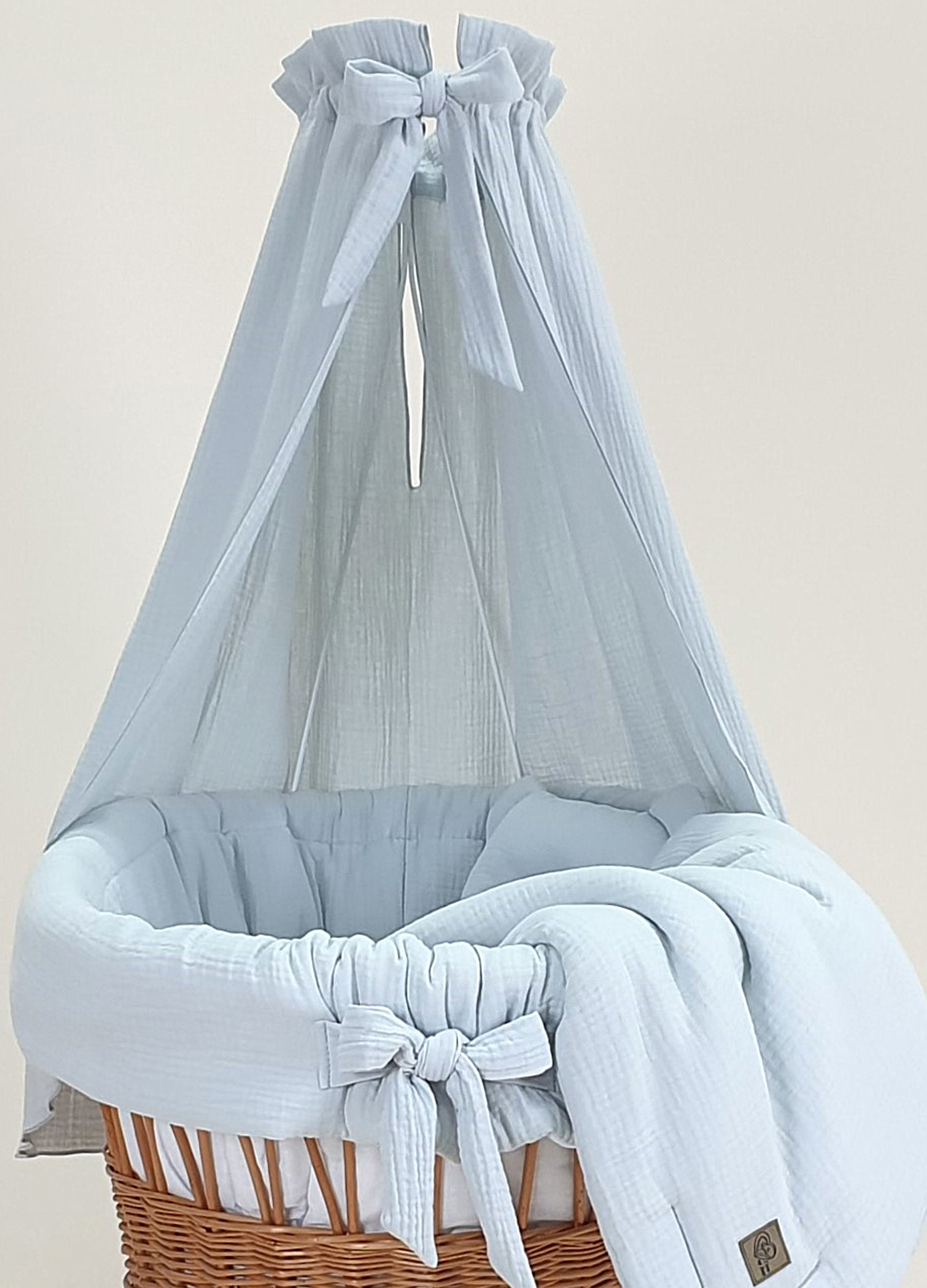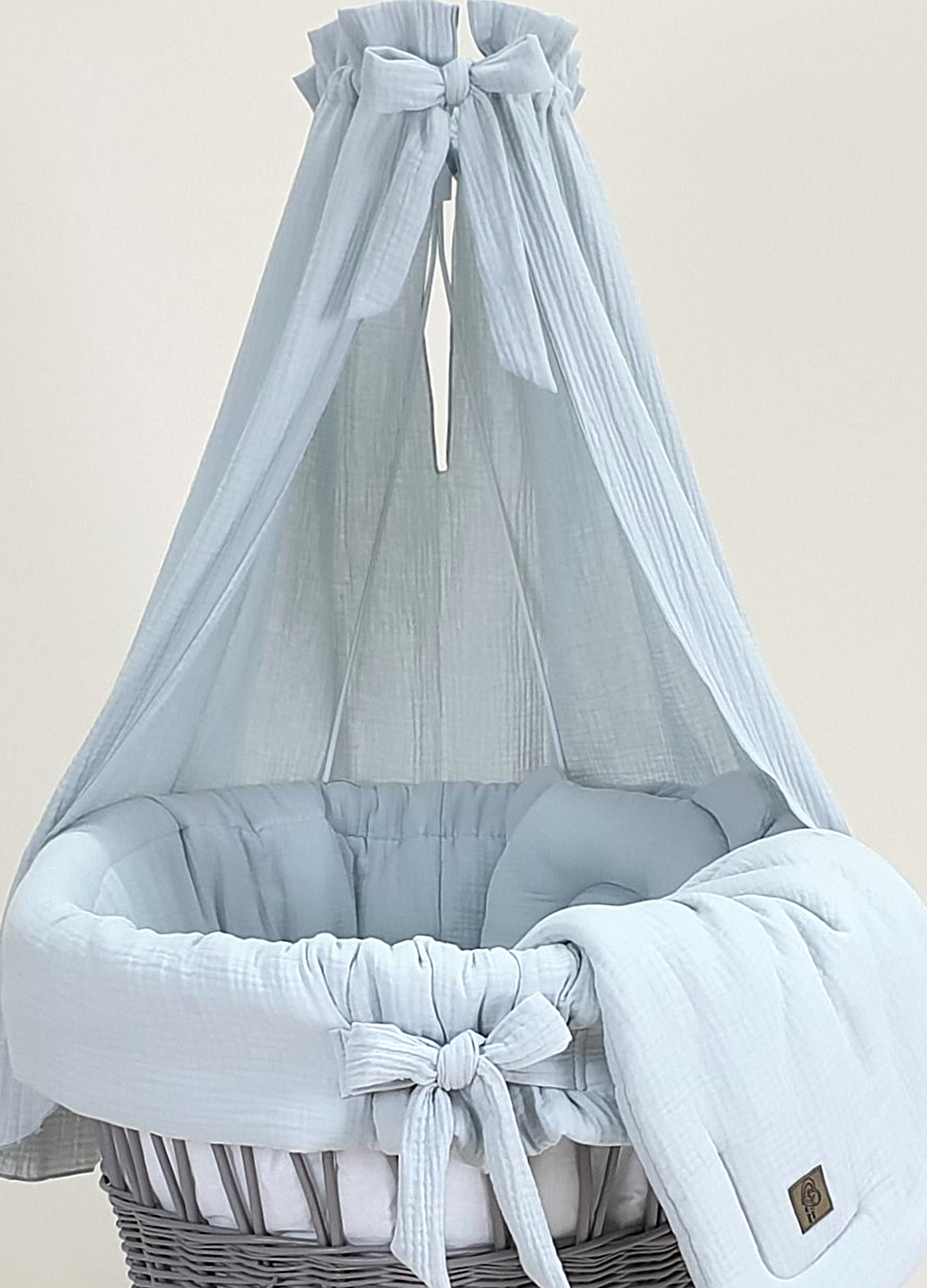 Wieg bekleding - gemaakt van 100% katoen-mousseline, passend voor rieten wiegen van 55-60 × 90 × 30 cm (B × L × H), bovenrandomtrek 250-260 cm.