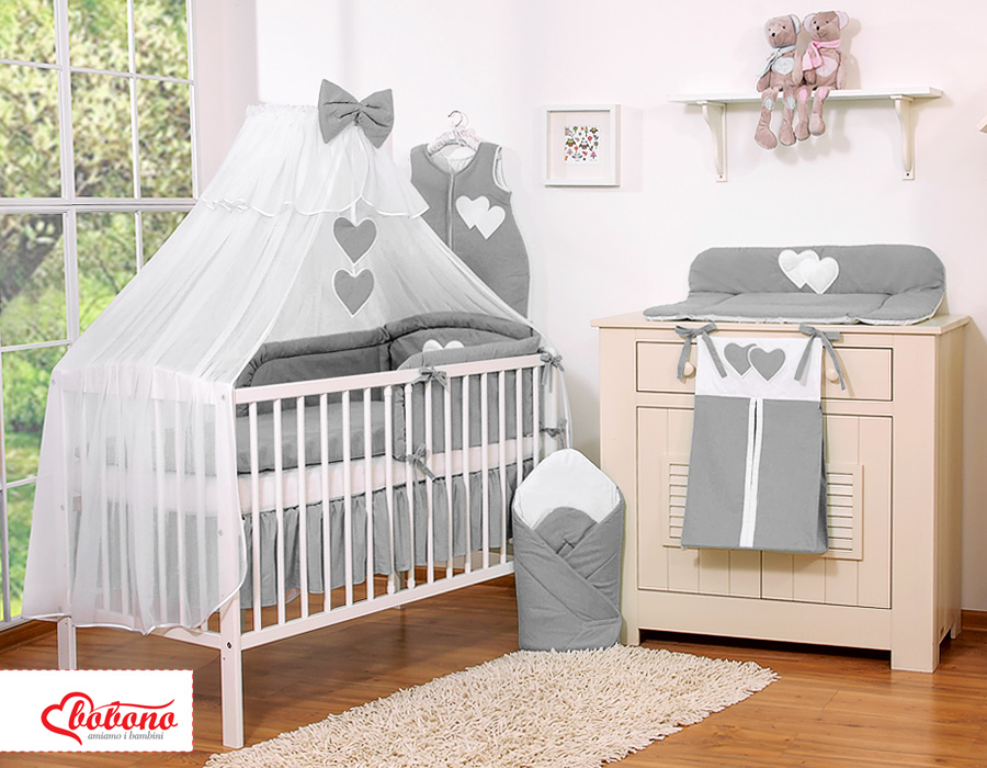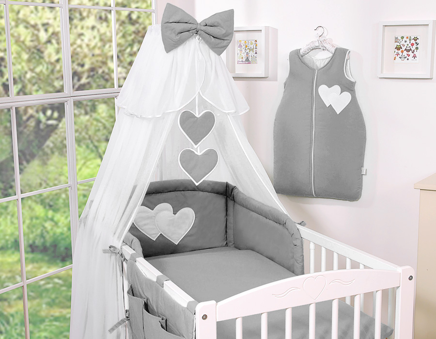 Kleinbaby.nl » Beddengoed voor Ledikant » Beddengoed Set Collectie Harten » Klamboe - Harten » Muskietennet van Tule voor Ledikant - Harten Antraciet Sifonki