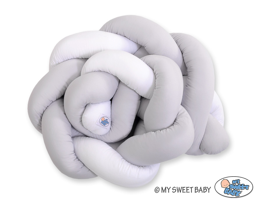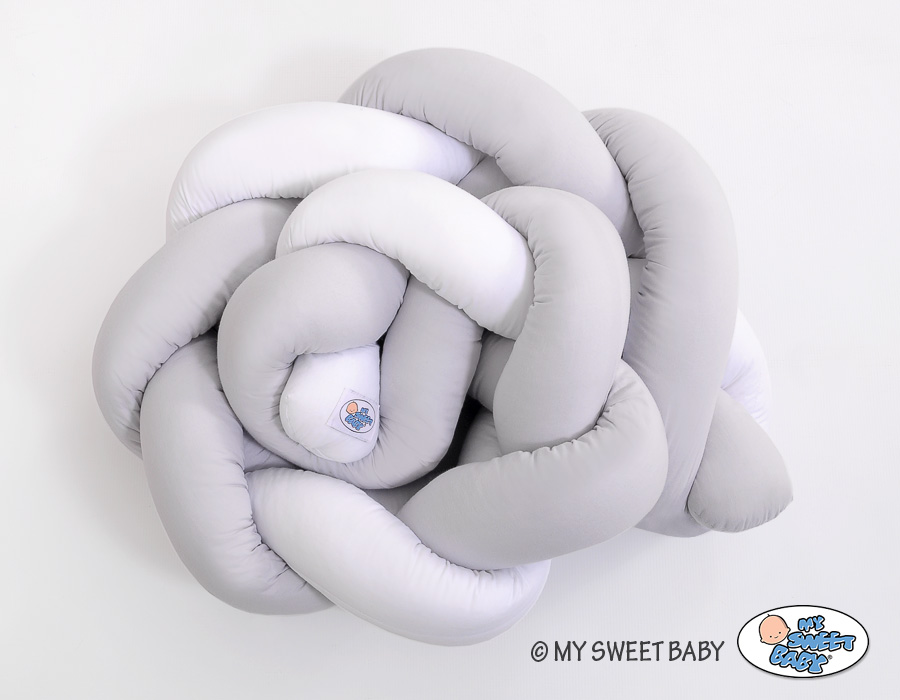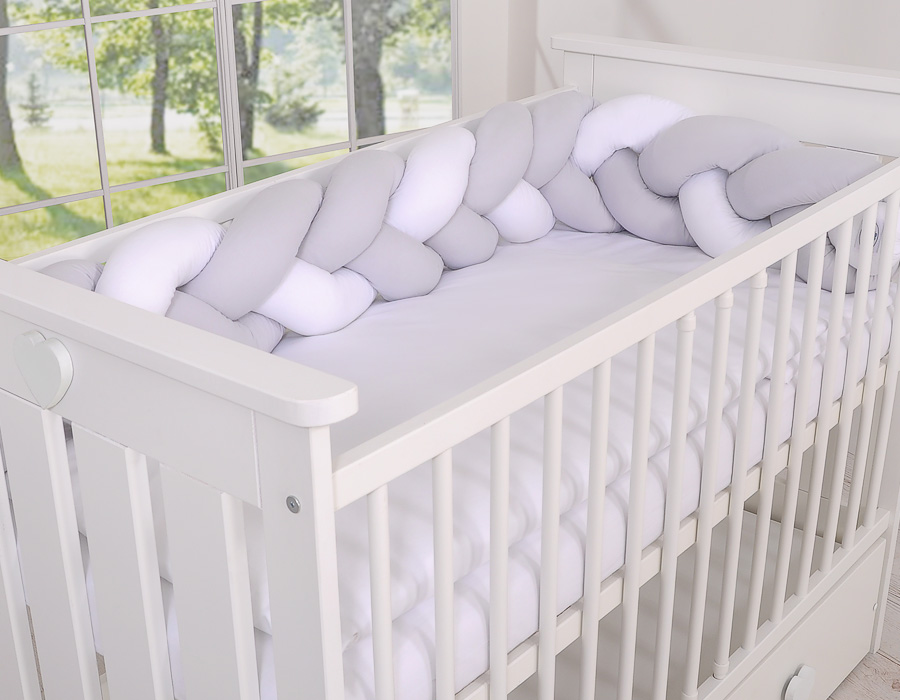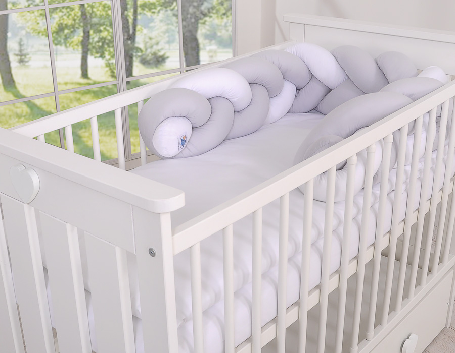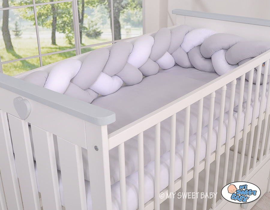 Kleinbaby.nl » Gevlochten Collectie » Gevlochten Bedomrander » My Sweet Baby Boxbumper Vlecht 180 cm Wit Grijs