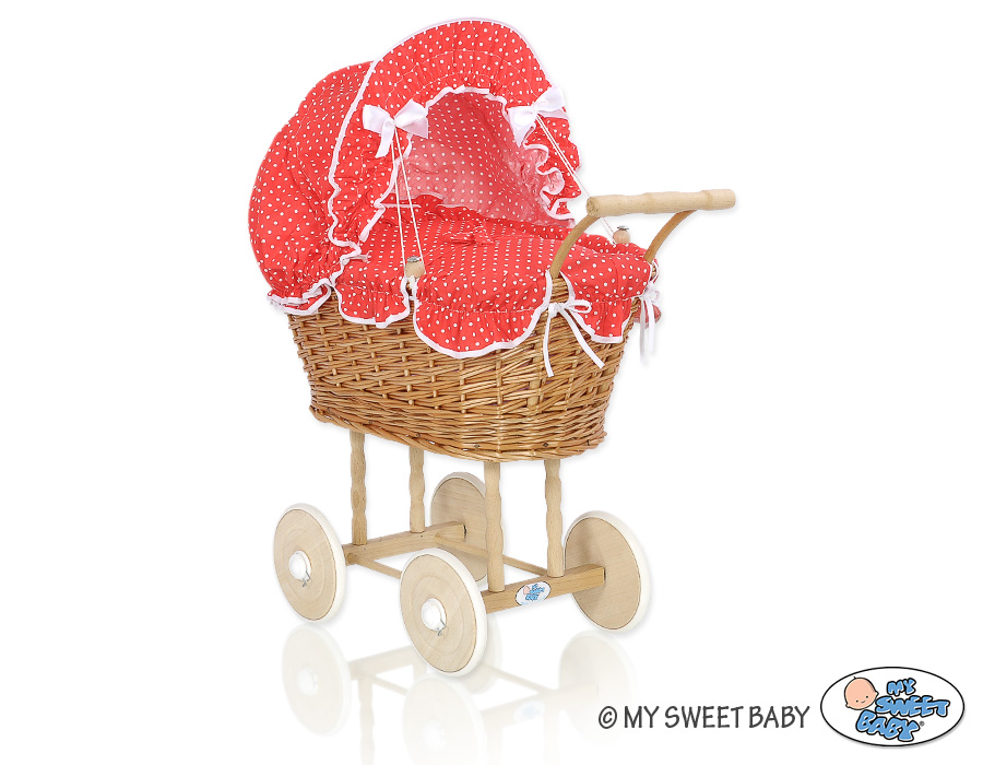 Kleinbaby.nl » Speelgoed Knuffels » Poppenwagens en Speelgoed » Poppenwagen van Riet » Poppenwagen Natuurlijke versie » Natuurlijke Poppenwagen van Riet Rood Polkaprikker