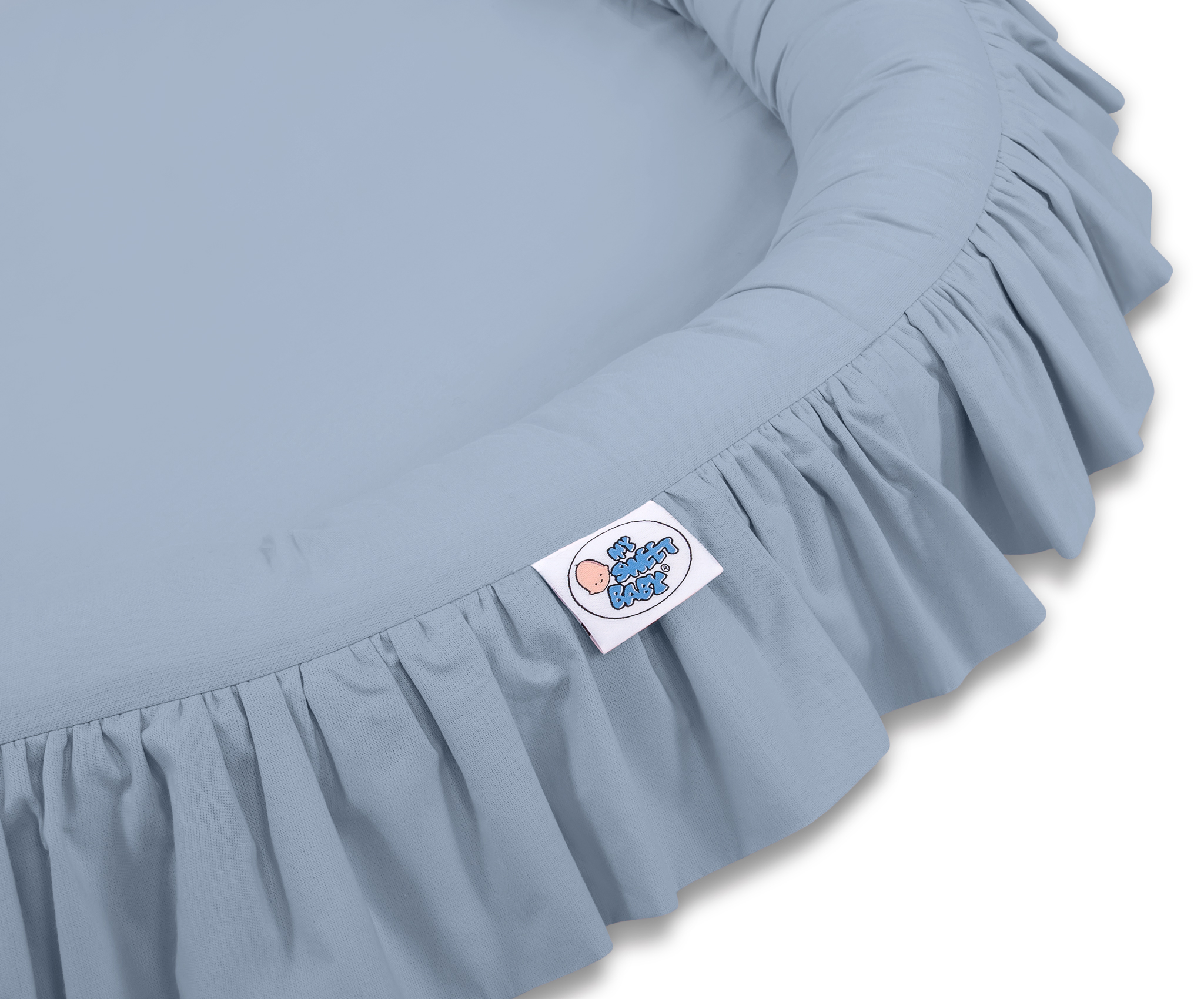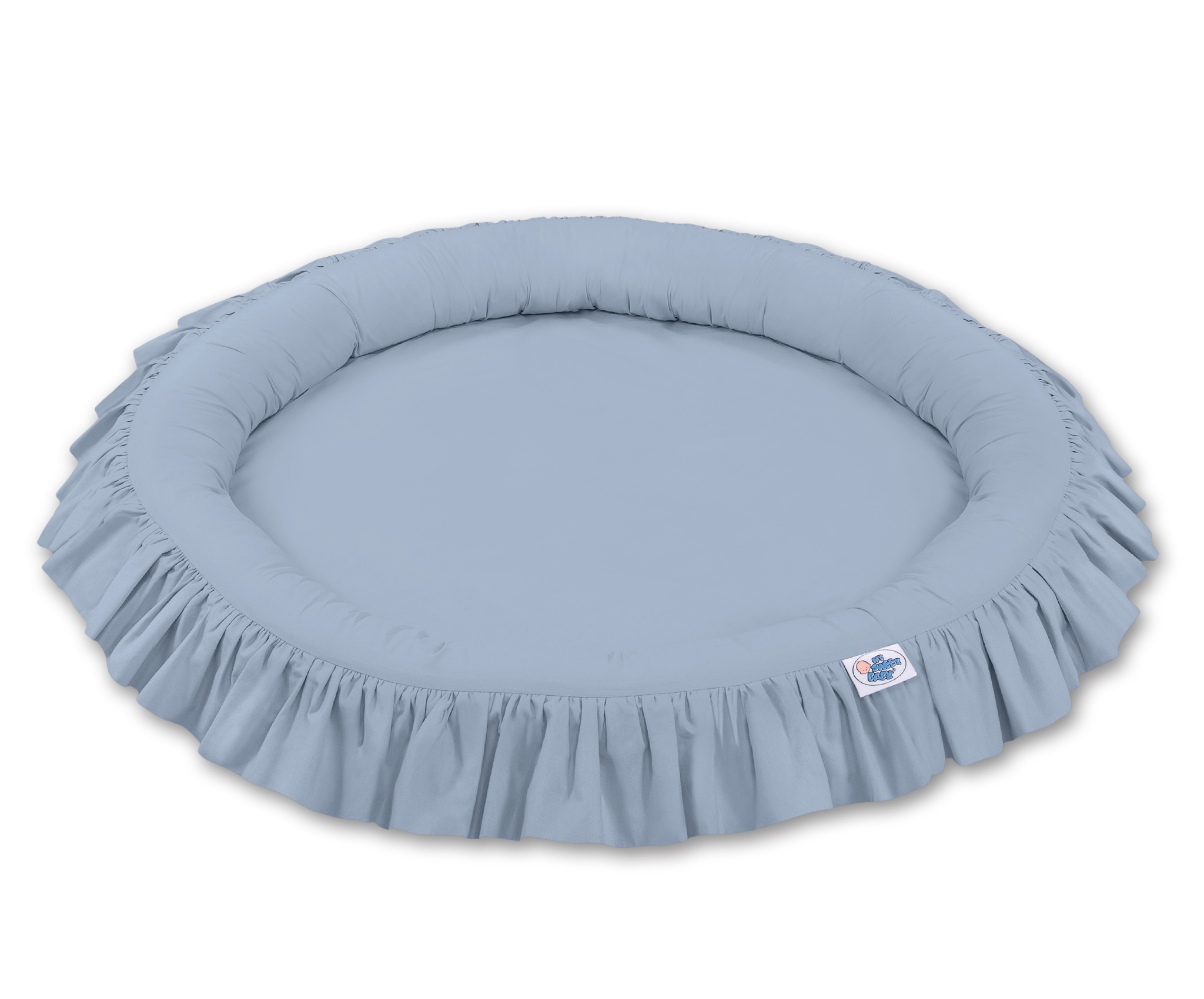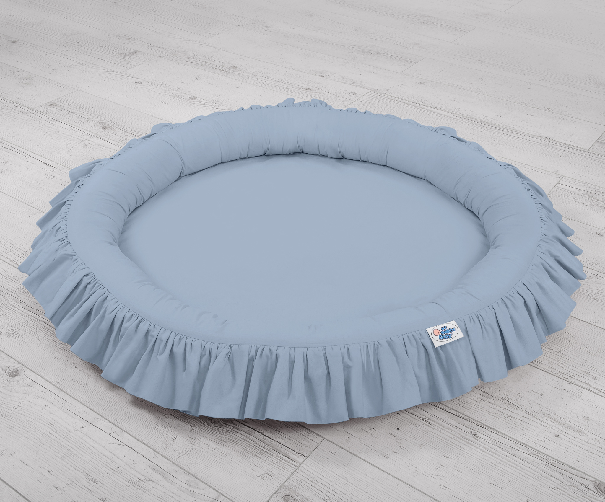 Prachtig nest met een volant. Een functioneel en praktisch nest om in te spelen. Het nest is ideaal als een plaats om te spelen, of als een vloernest onder de katoenen luifel. Het nest met volant kan vanaf de geboorte gebruikt worden als een veilige rustplaats. De zachte randen bieden een veilige omgeving voor de baby. Het is perfect als speelplek met speelgoed. In combinatie met de katoenen luifel creëert het nest een prachtige speeltent.