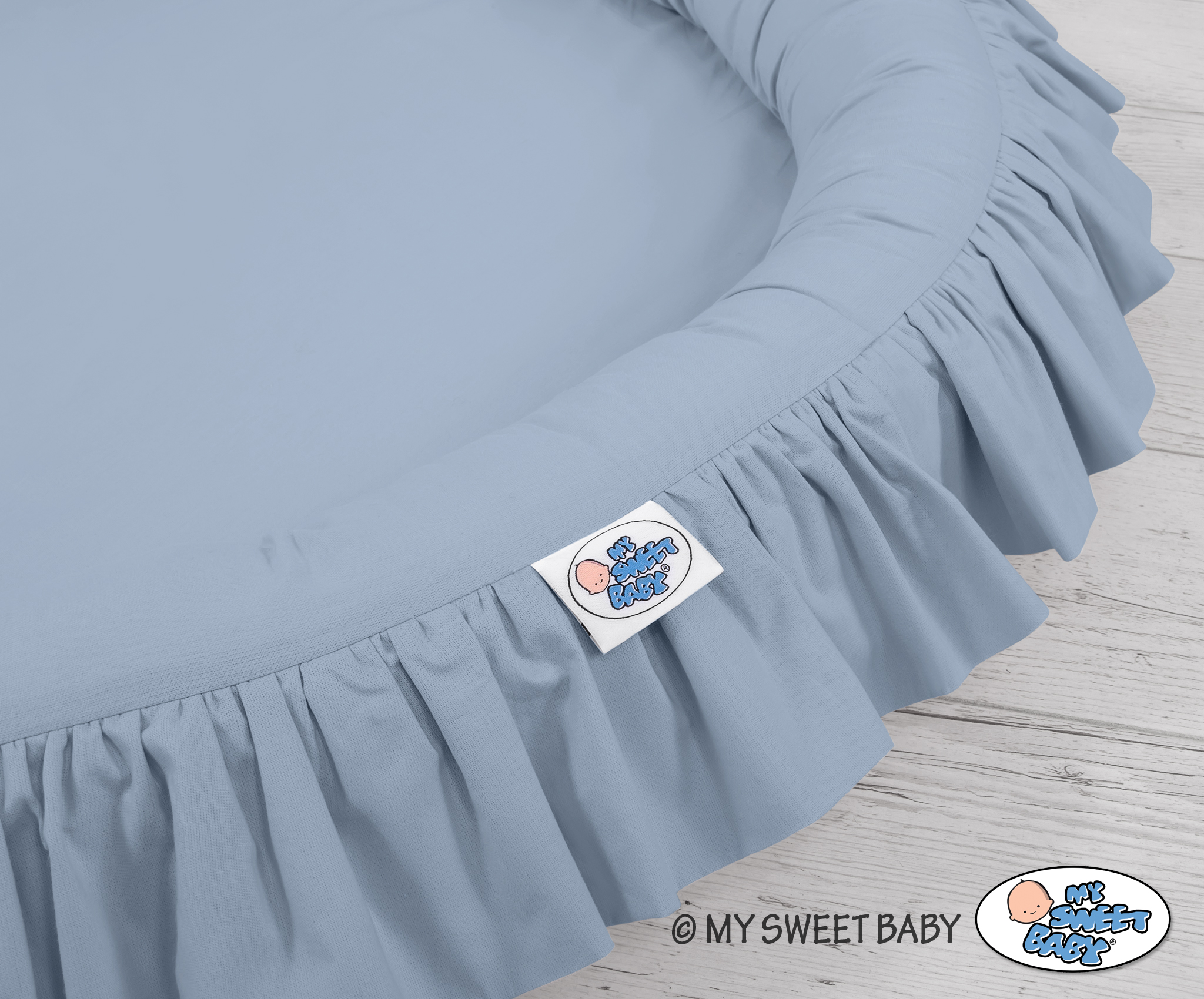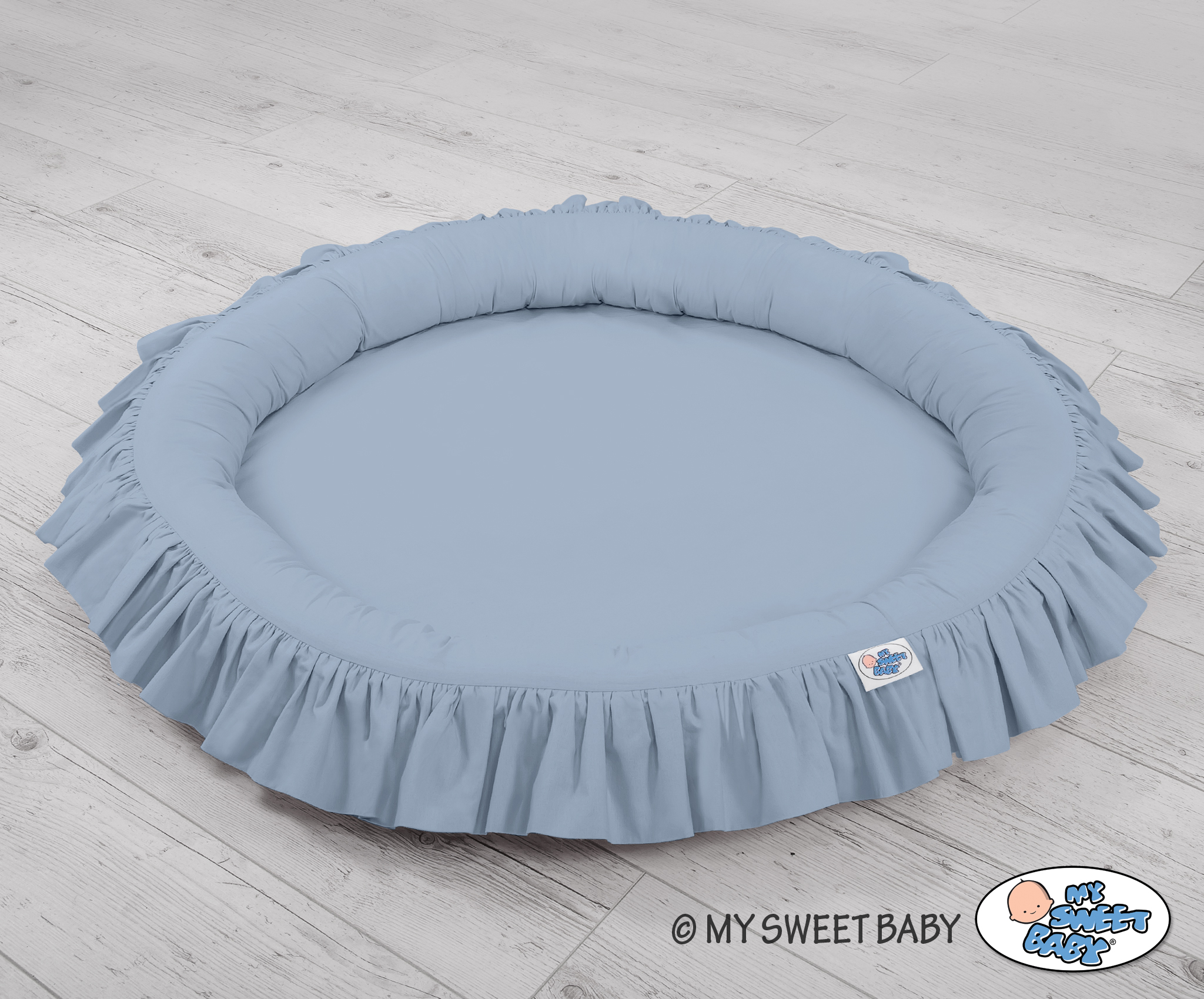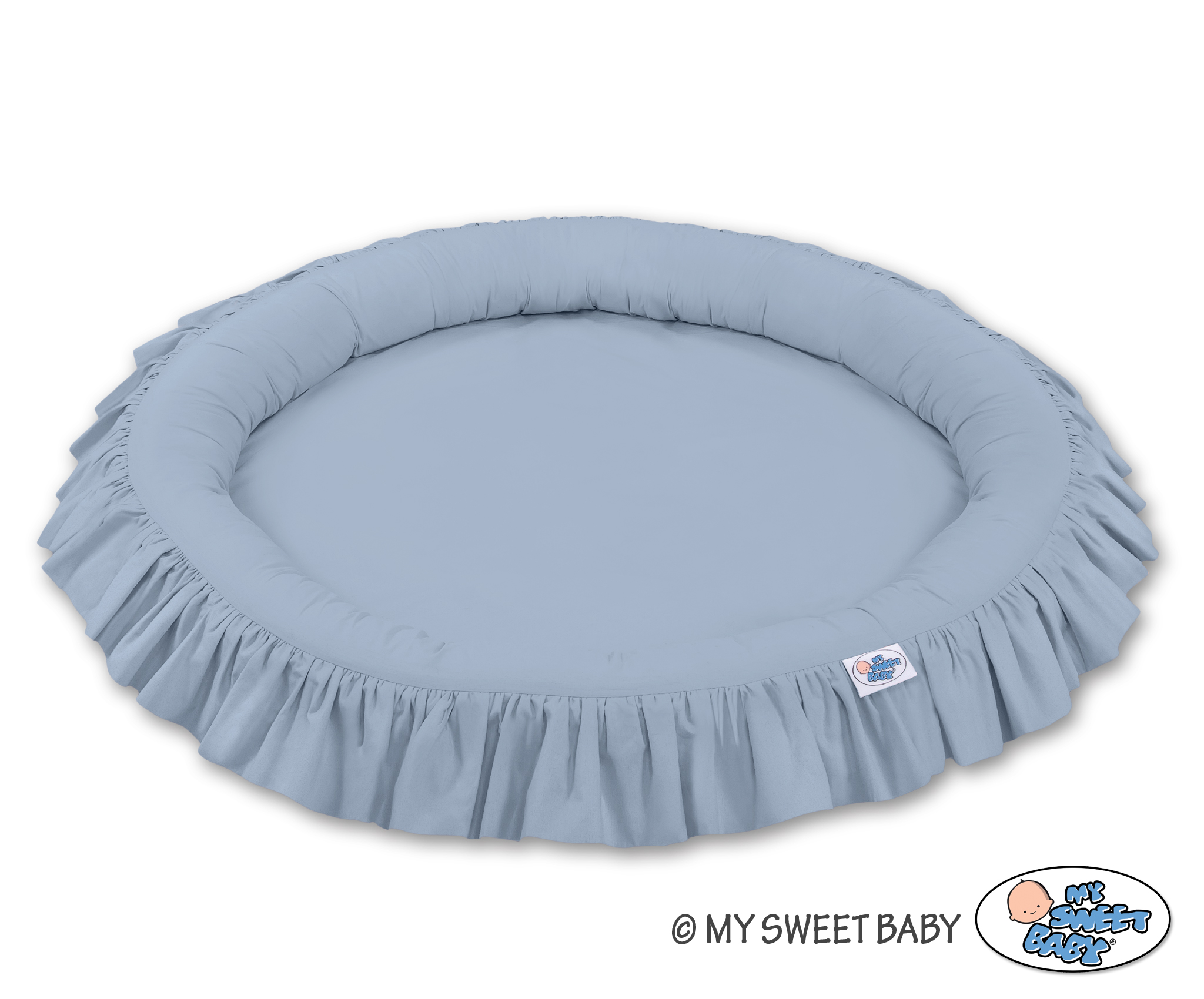 Prachtig nest met een volant. Een functioneel en praktisch nest om in te spelen. Het nest is ideaal als een plaats om te spelen, of als een vloernest onder de katoenen luifel. Het nest met volant kan vanaf de geboorte gebruikt worden als een veilige rustplaats. De zachte randen bieden een veilige omgeving voor de baby. Het is perfect als speelplek met speelgoed. In combinatie met de katoenen luifel creëert het nest een prachtige speeltent.