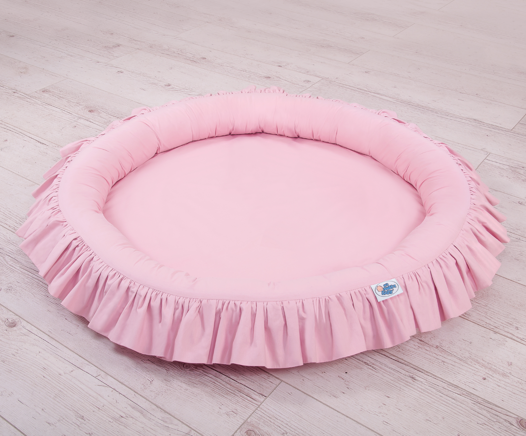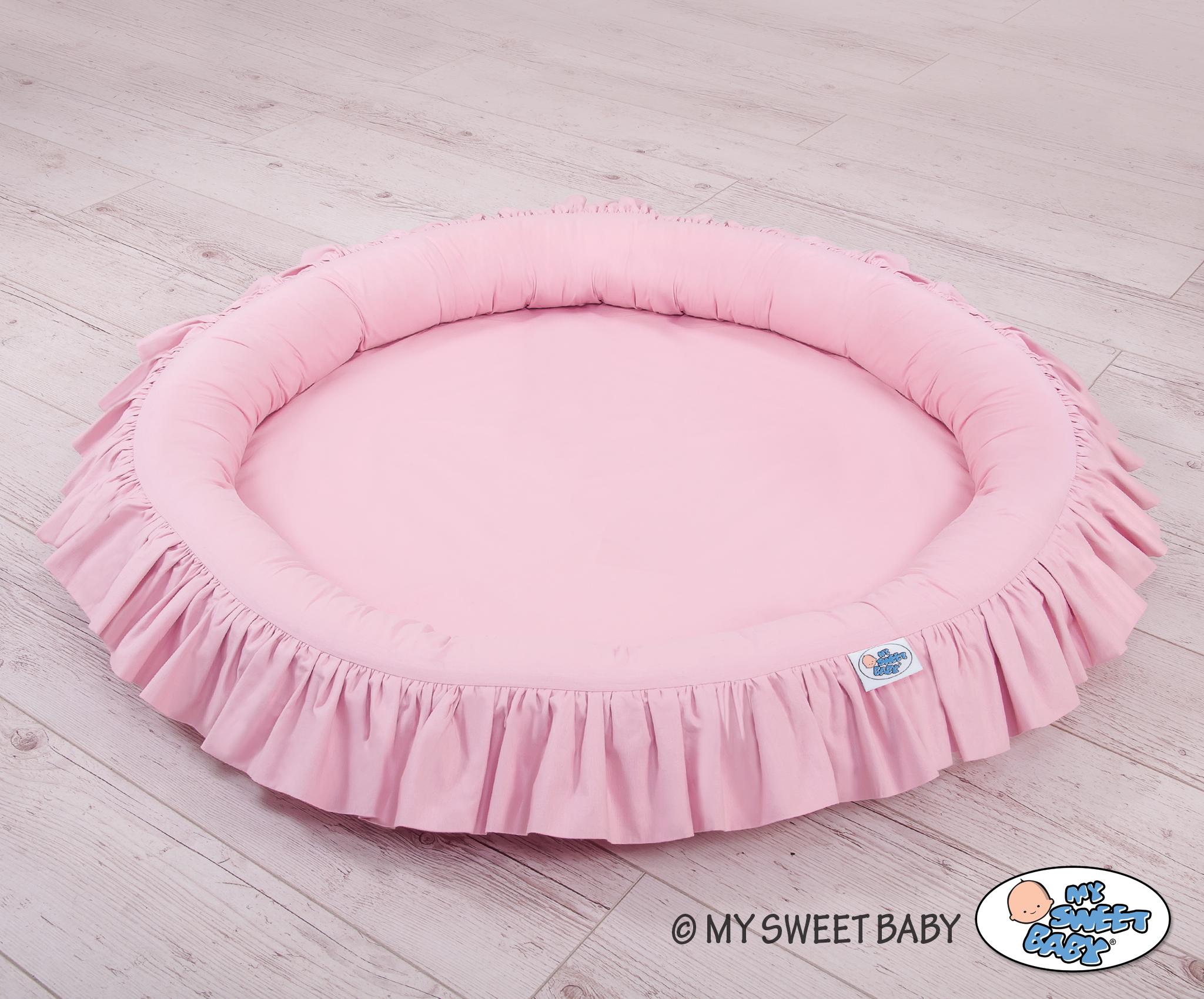 Prachtig nest met een volant. Een functioneel en praktisch nest om in te spelen. Het nest is ideaal als een plaats om te spelen, of als een vloernest onder de katoenen luifel. Het nest met volant kan vanaf de geboorte gebruikt worden als een veilige rustplaats. De zachte randen bieden een veilige omgeving voor de baby. Het is perfect als speelplek met speelgoed. In combinatie met de katoenen luifel creëert het nest een prachtige speeltent.