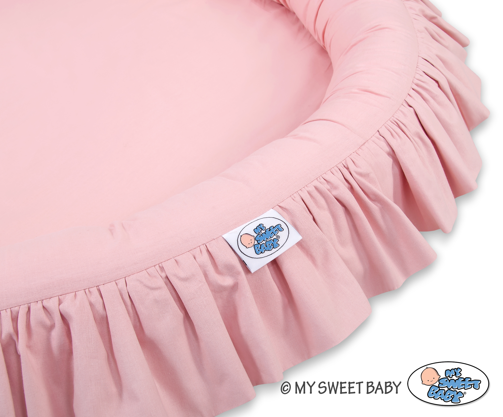 Prachtig nest met een volant. Een functioneel en praktisch nest om in te spelen. Het nest is ideaal als een plaats om te spelen, of als een vloernest onder de katoenen luifel. Het nest met volant kan vanaf de geboorte gebruikt worden als een veilige rustplaats. De zachte randen bieden een veilige omgeving voor de baby. Het is perfect als speelplek met speelgoed. In combinatie met de katoenen luifel creëert het nest een prachtige speeltent.