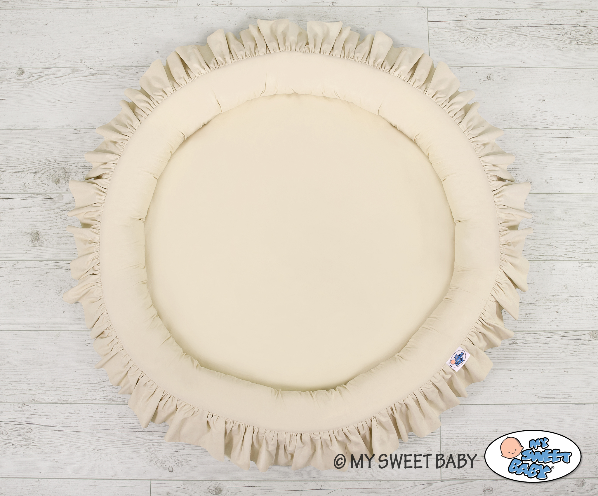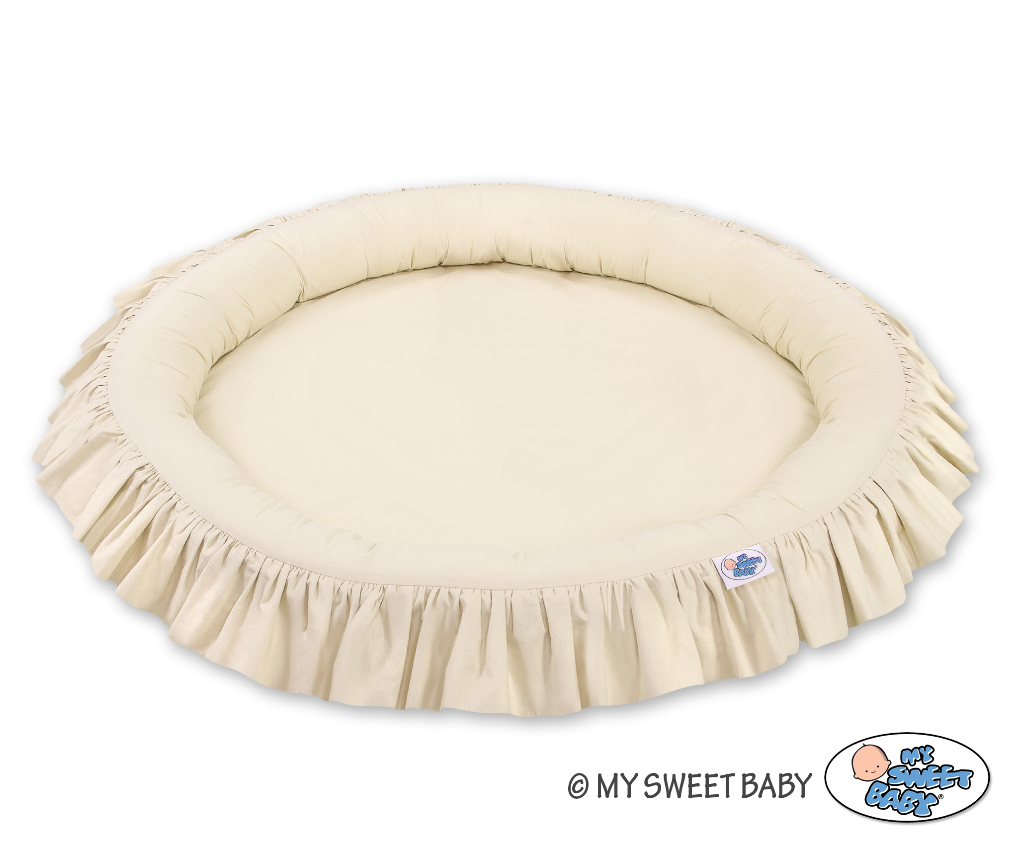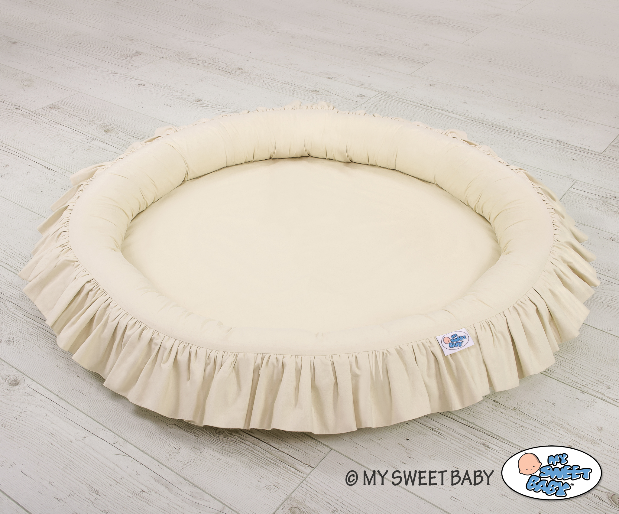 Prachtig nest met een volant. Een functioneel en praktisch nest om in te spelen. Het nest is ideaal als een plaats om te spelen, of als een vloernest onder de katoenen luifel. Het nest met volant kan vanaf de geboorte gebruikt worden als een veilige rustplaats. De zachte randen bieden een veilige omgeving voor de baby. Het is perfect als speelplek met speelgoed. In combinatie met de katoenen luifel creëert het nest een prachtige speeltent.