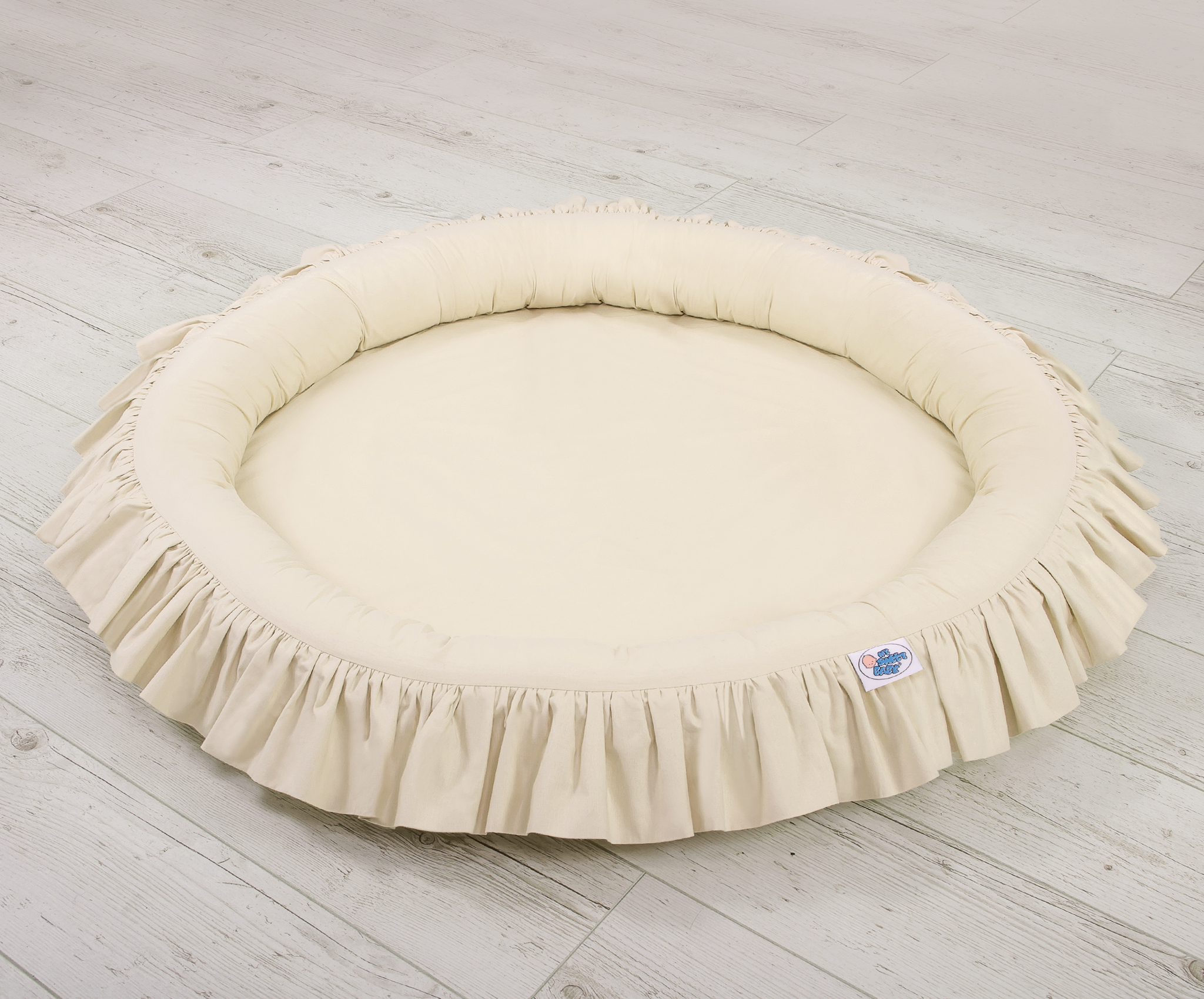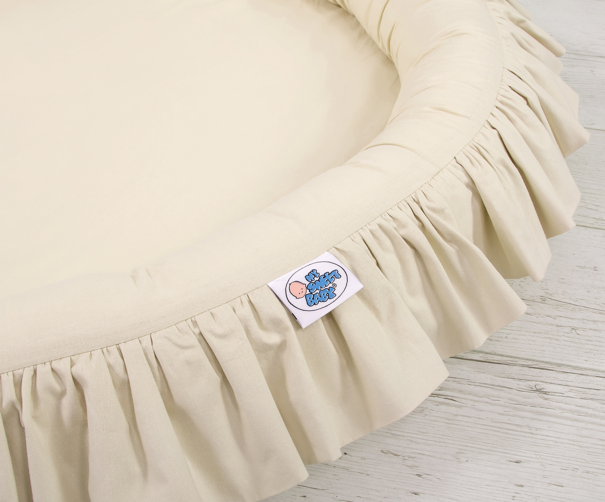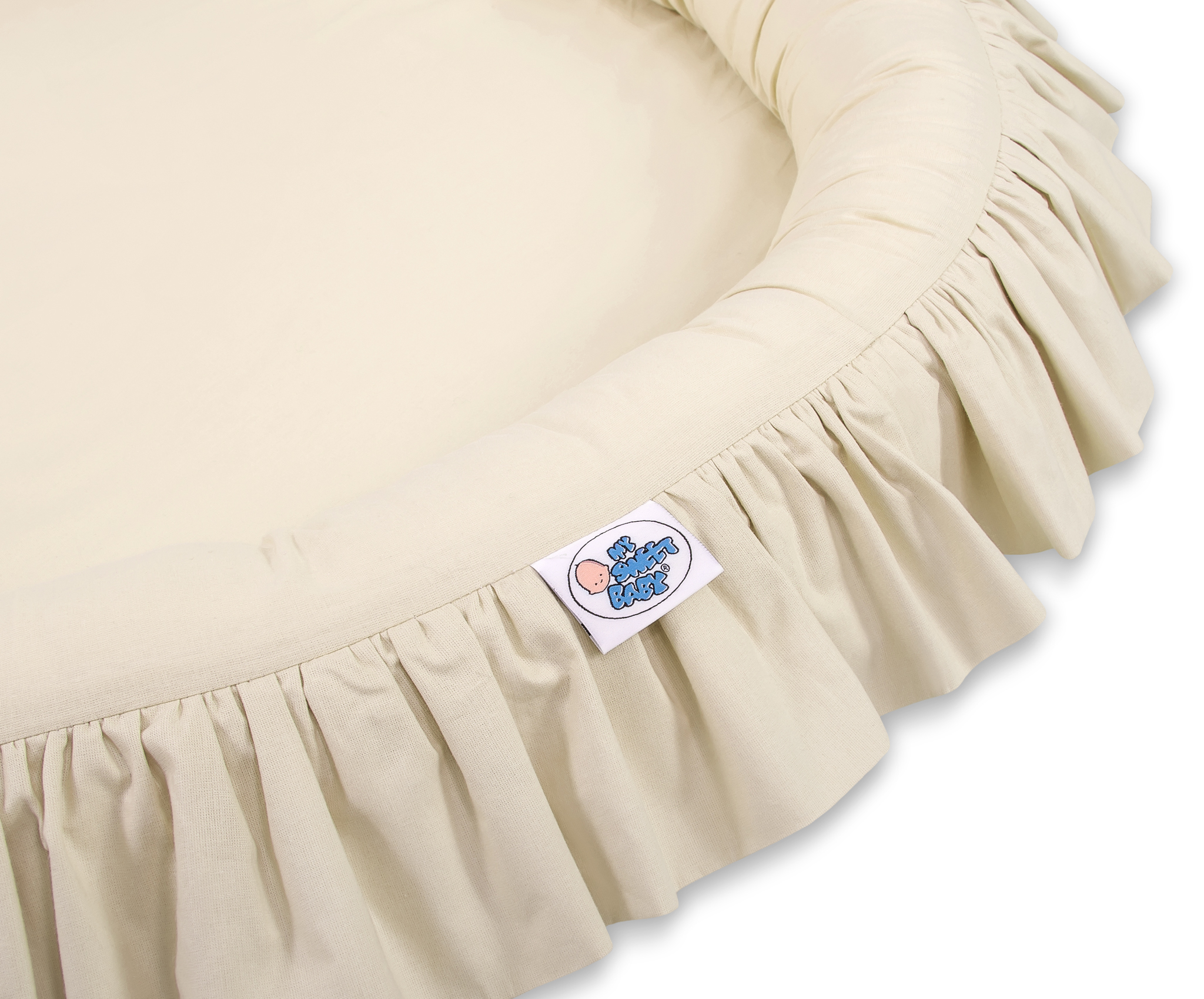 Prachtig nest met een volant. Een functioneel en praktisch nest om in te spelen. Het nest is ideaal als een plaats om te spelen, of als een vloernest onder de katoenen luifel. Het nest met volant kan vanaf de geboorte gebruikt worden als een veilige rustplaats. De zachte randen bieden een veilige omgeving voor de baby. Het is perfect als speelplek met speelgoed. In combinatie met de katoenen luifel creëert het nest een prachtige speeltent.