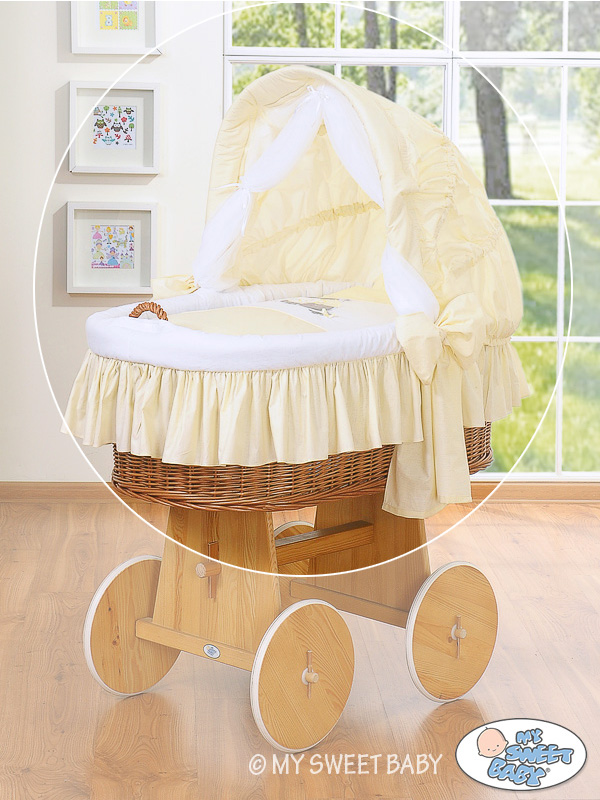 Wiegbekleding met kap BeigeNieuw Beddengoed - Hoezen voor Rieten WiegNieuw Beddengoed - Hoezen voor Rieten Wieg