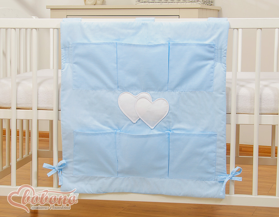 Kleinbaby.nl » Beddengoed voor Ledikant » Beddengoed Set Collectie Harten » Opbergzag voor Ledikant Harten » Opbergtas voor Babybed - Harten Blauw Snijder