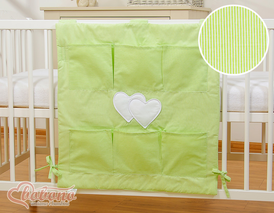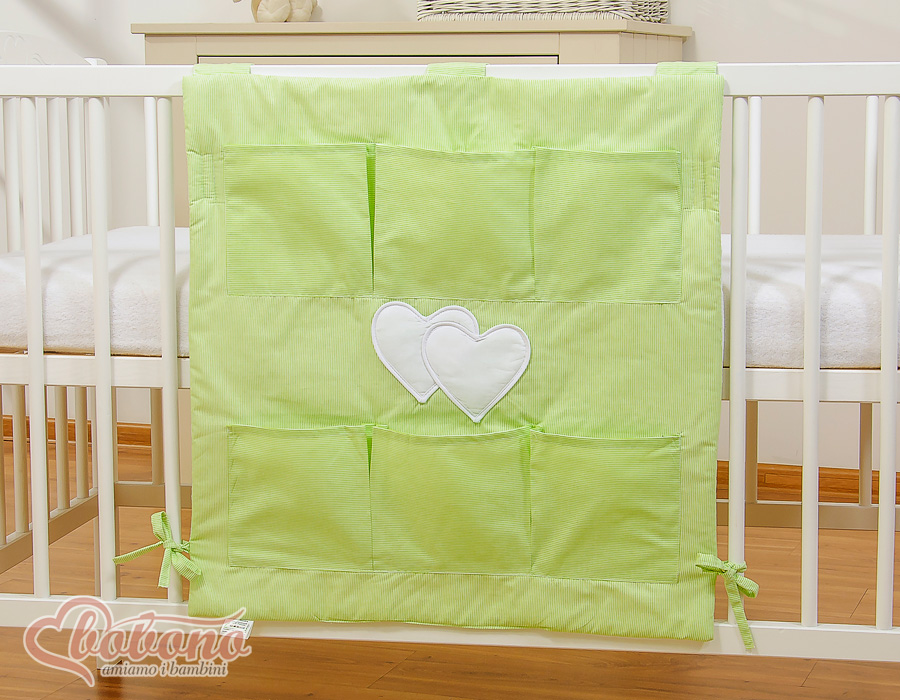 Kleinbaby.nl » Beddengoed voor Ledikant » Beddengoed Set Collectie Harten » Opbergzag voor Ledikant Harten » Opbergtas voor Kinderbed - Harten Groen Snijder