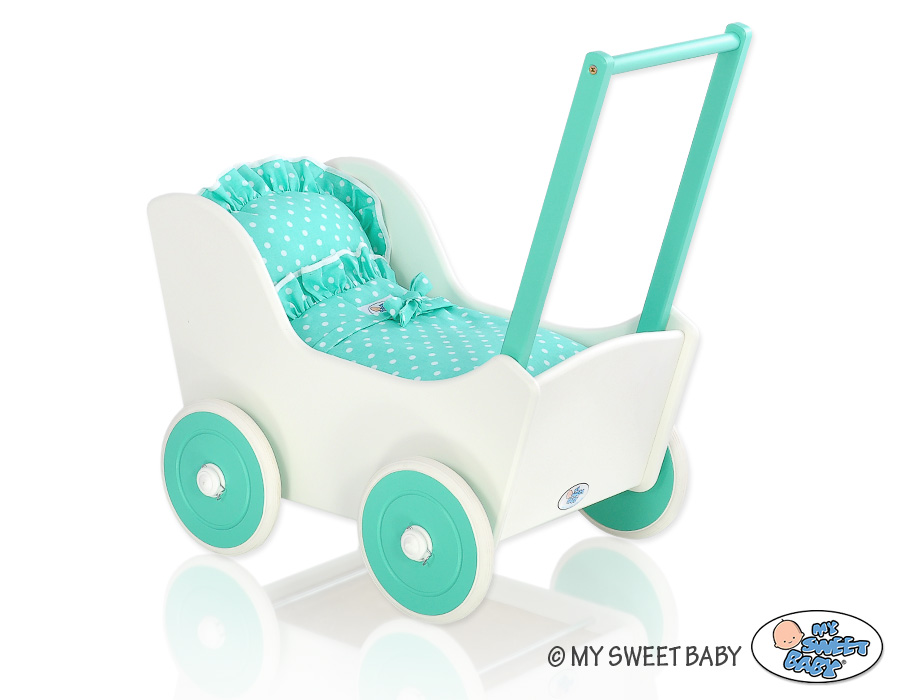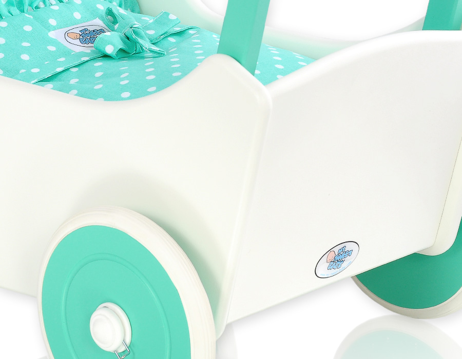 Kleinbaby.nl » Speelgoed Knuffels » Poppenwagens en Speelgoed » Houten Poppenwagen » Poppenwagen van Hout Mint » Poppenwagen Hout Mint Wit