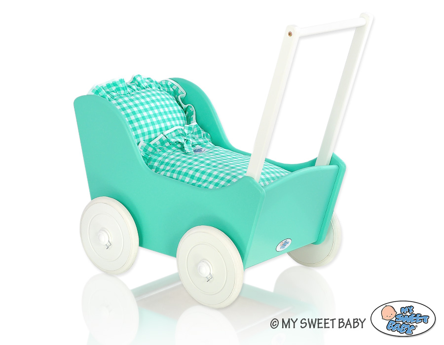 Kleinbaby.nl » Speelgoed Knuffels » Poppenwagens en Speelgoed » Houten Poppenwagen » Poppenwagen van Hout Mint » Poppenwagen Hout Mint Wit