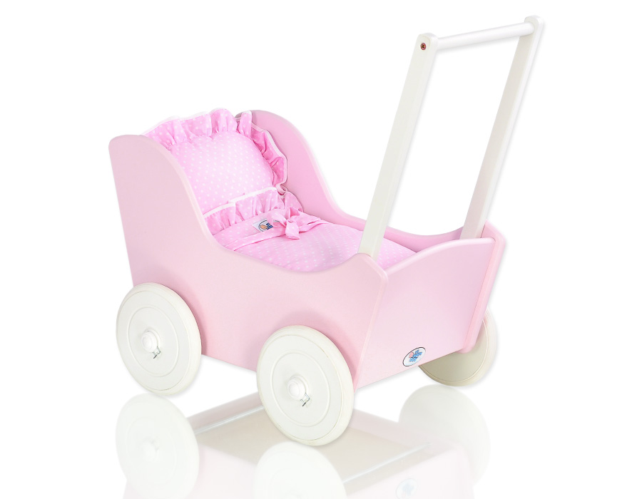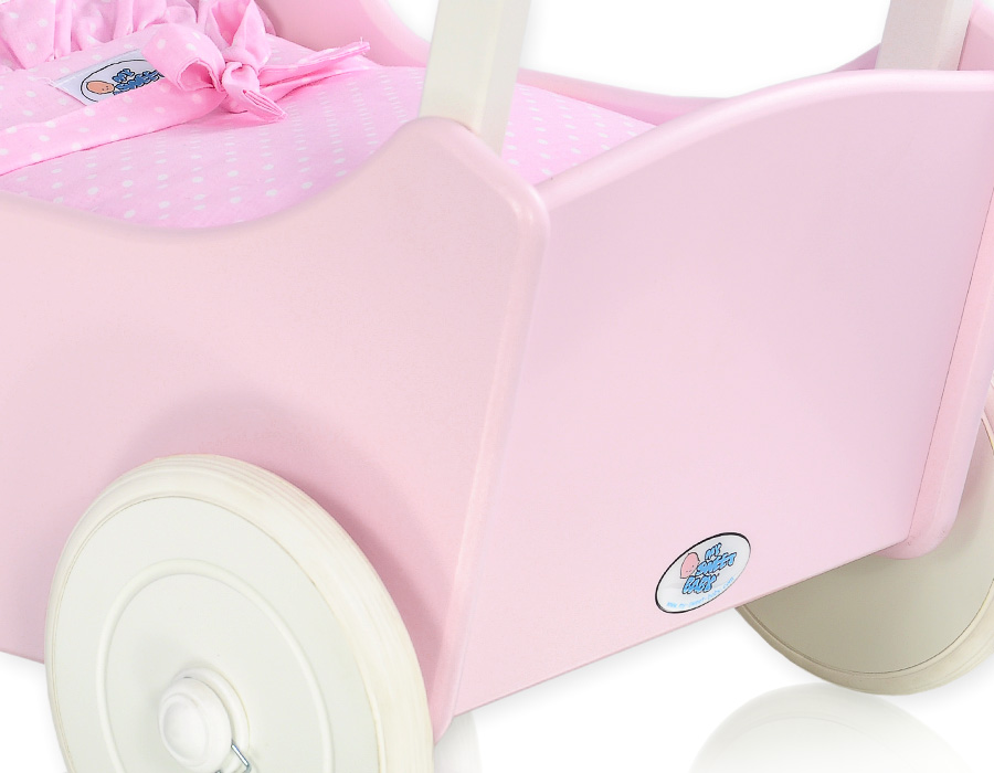 Geweldig cadeau voor een kleine meid. De poppenwagen is hét topproduct voor kinderen. Gemaakt van veilige materialen en geverfd met ecologische verf. De wielen zijn met een klikmechanisme gemonteerd op metalen assen, wat ze soepeler doet draaien.