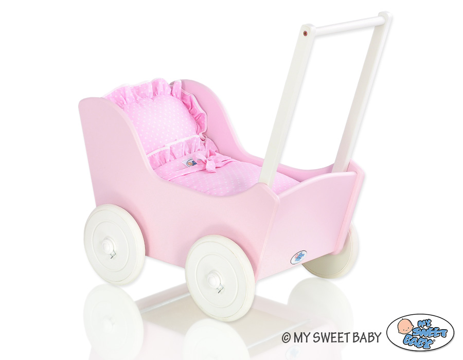 Kleinbaby.nl » Speelgoed Knuffels » Poppenwagens en Speelgoed » Houten Poppenwagen » Houten Poppenwagen Roze » Poppenwagen Hout Roze Wit