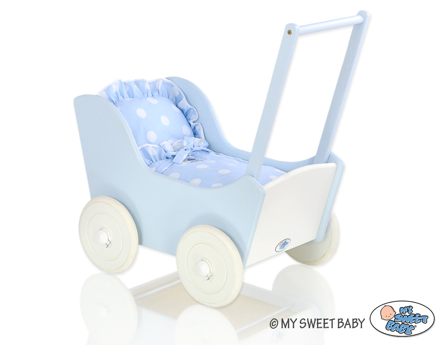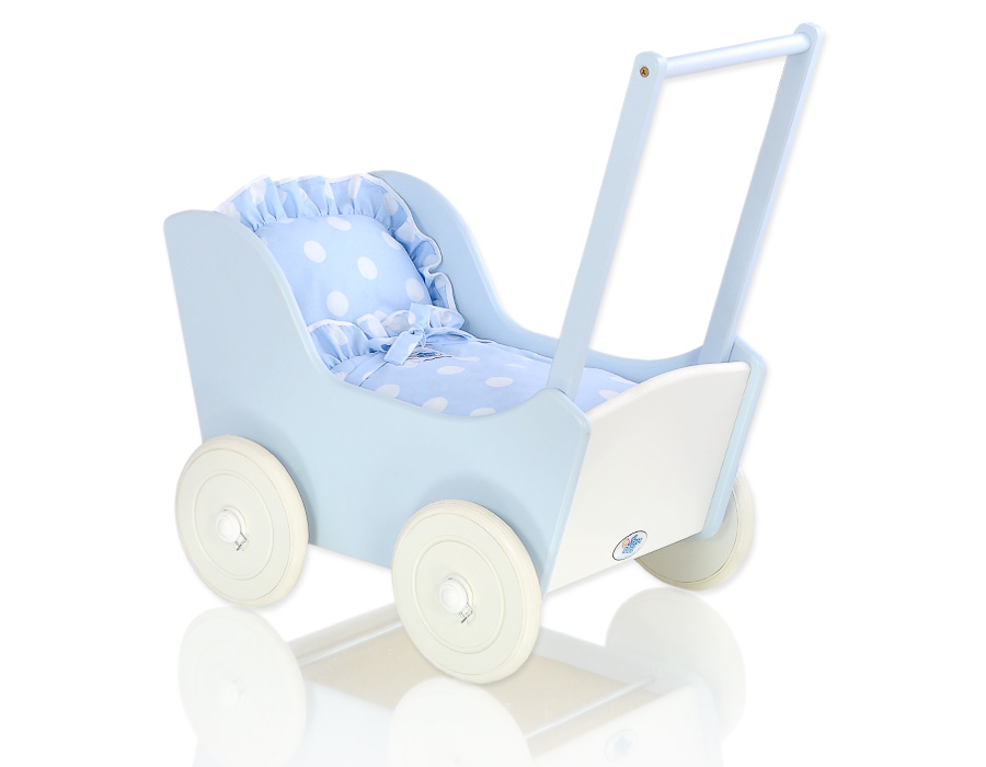 Kleinbaby.nl » Speelgoed Knuffels » Poppenwagens en Speelgoed » Houten Poppenwagen » Houten Poppenwagen Blauw » Poppenwagen Hout Wit Blauw