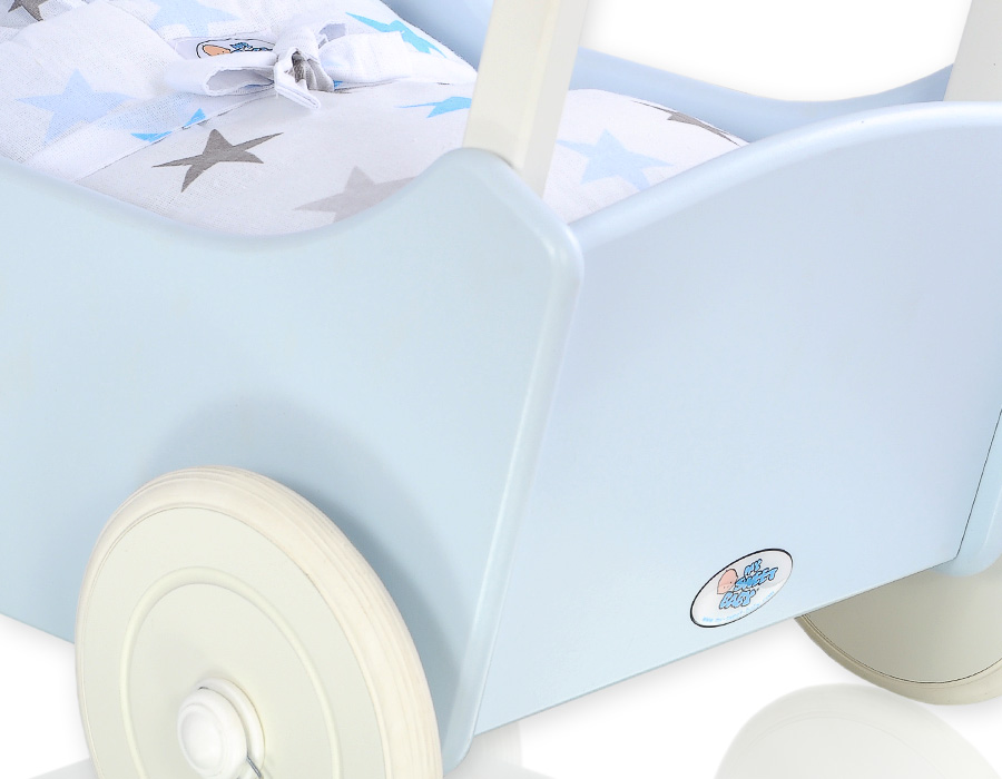 Kleinbaby.nl » Speelgoed Knuffels » Poppenwagens en Speelgoed » Houten Poppenwagen » Houten Poppenwagen Blauw » Poppenwagen Hout Wit Blauw