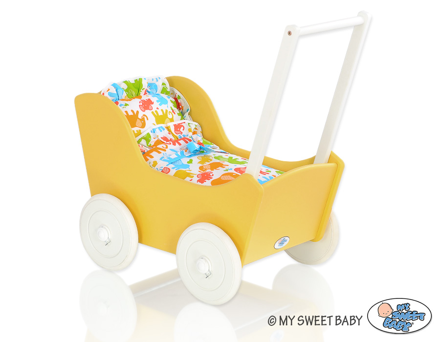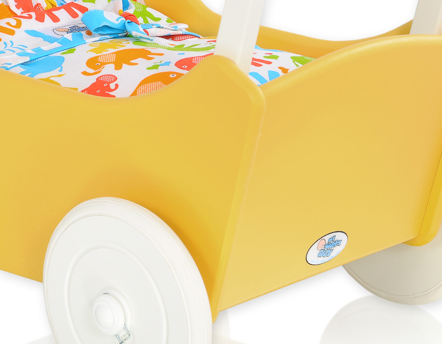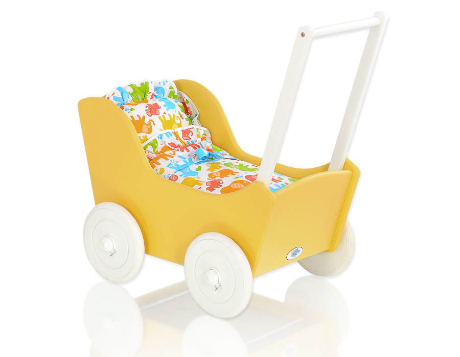 Kleinbaby.nl » Speelgoed Knuffels » Poppenwagens en Speelgoed » Houten Poppenwagen » Poppenwagen van Hout Geel » Poppenwagen Hout Wit Geel