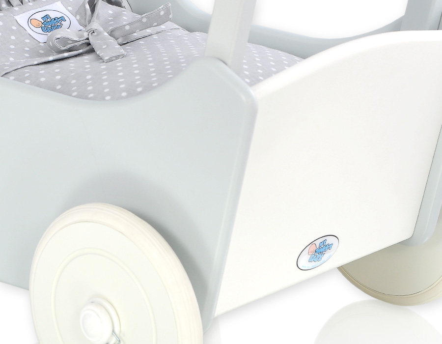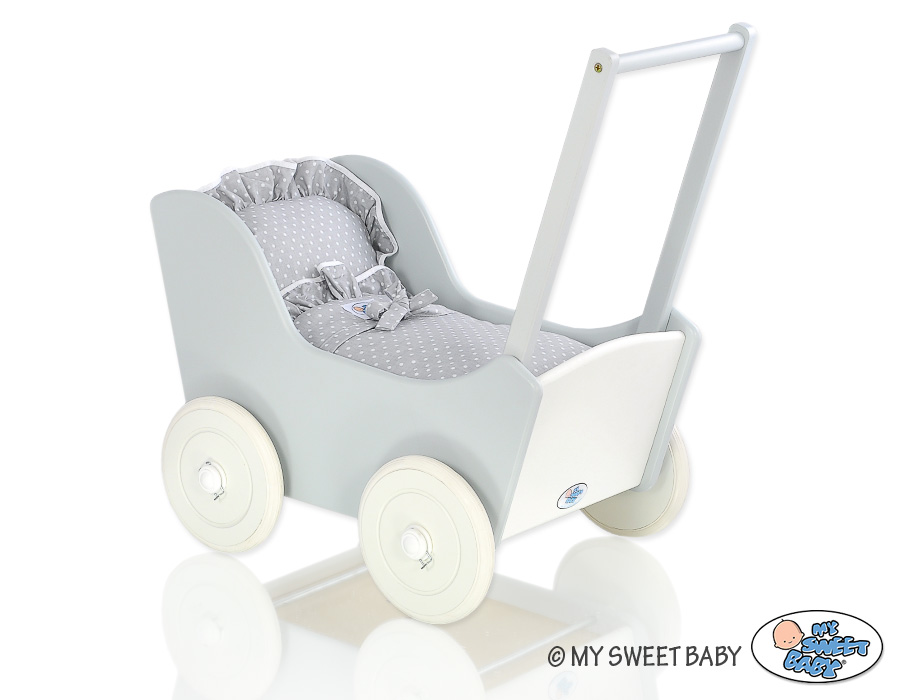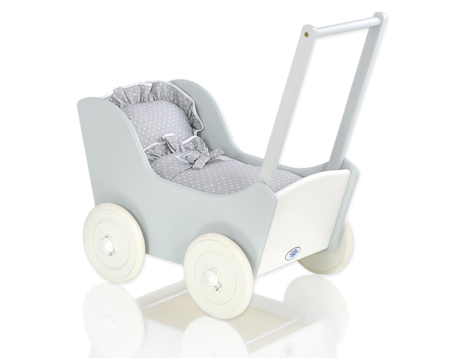 Kleinbaby.nl » Speelgoed Knuffels » Poppenwagens en Speelgoed » Houten Poppenwagen » Houten Poppenwagen Grijs » Poppenwagen Hout Wit Grijs