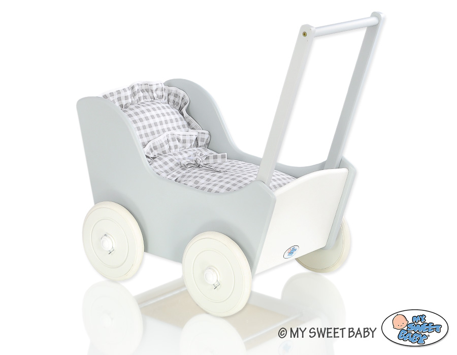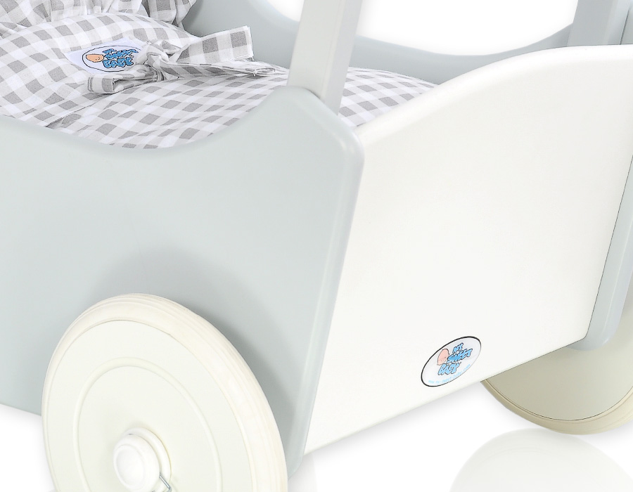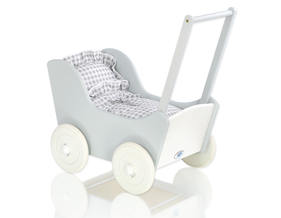 Kleinbaby.nl » Speelgoed Knuffels » Poppenwagens en Speelgoed » Houten Poppenwagen » Houten Poppenwagen Grijs » Poppenwagen Hout Wit Grijs