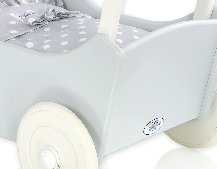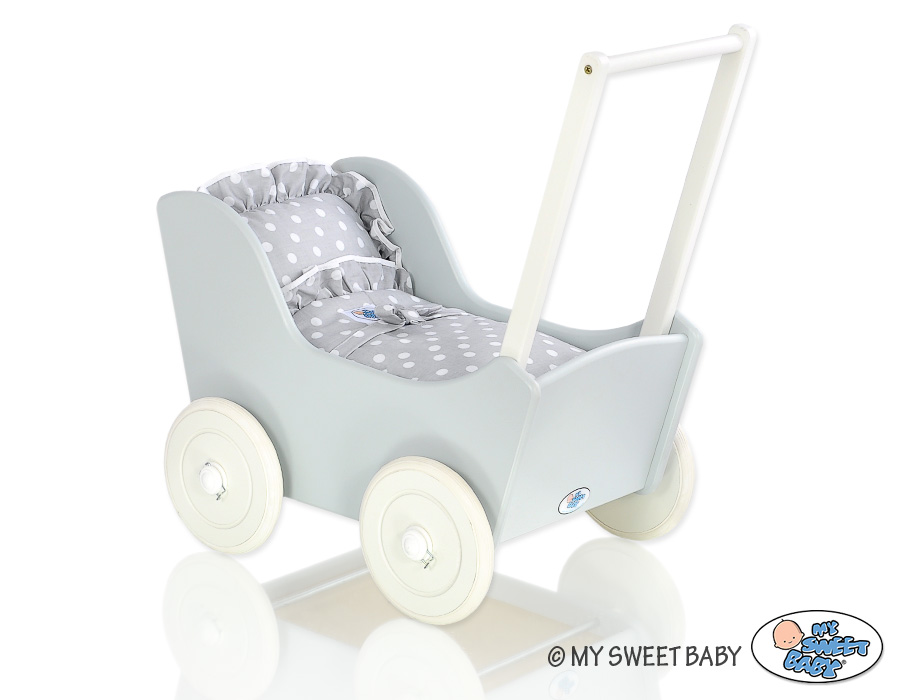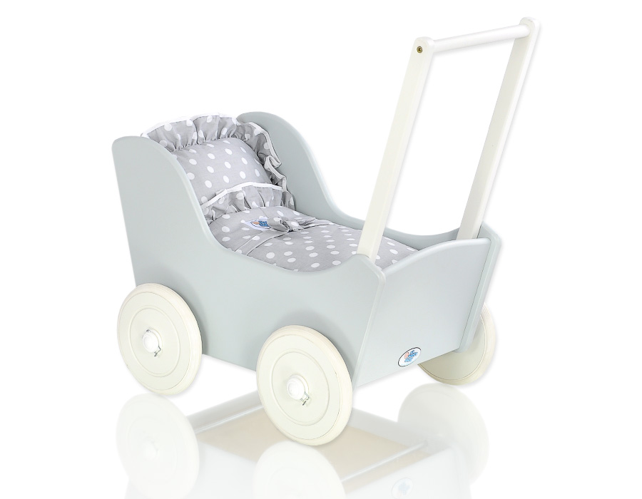 Kleinbaby.nl » Speelgoed Knuffels » Poppenwagens en Speelgoed » Houten Poppenwagen » Houten Poppenwagen Grijs » Poppenwagen Hout Wit Grijs