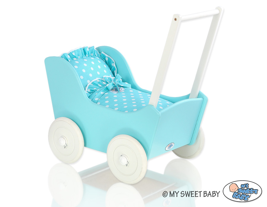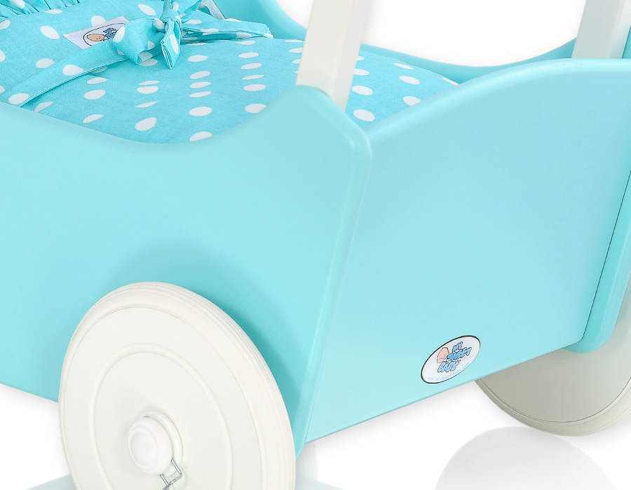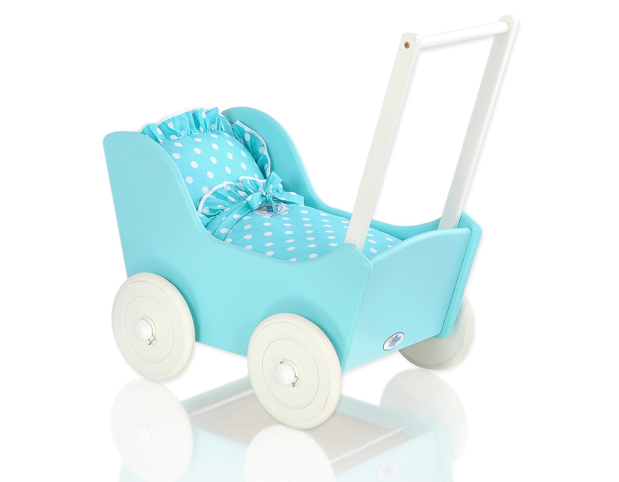 Kleinbaby.nl » Speelgoed Knuffels » Poppenwagens en Speelgoed » Houten Poppenwagen » Houten Poppenwagens Turkoois » Poppenwagen Hout Wit Turkoois
