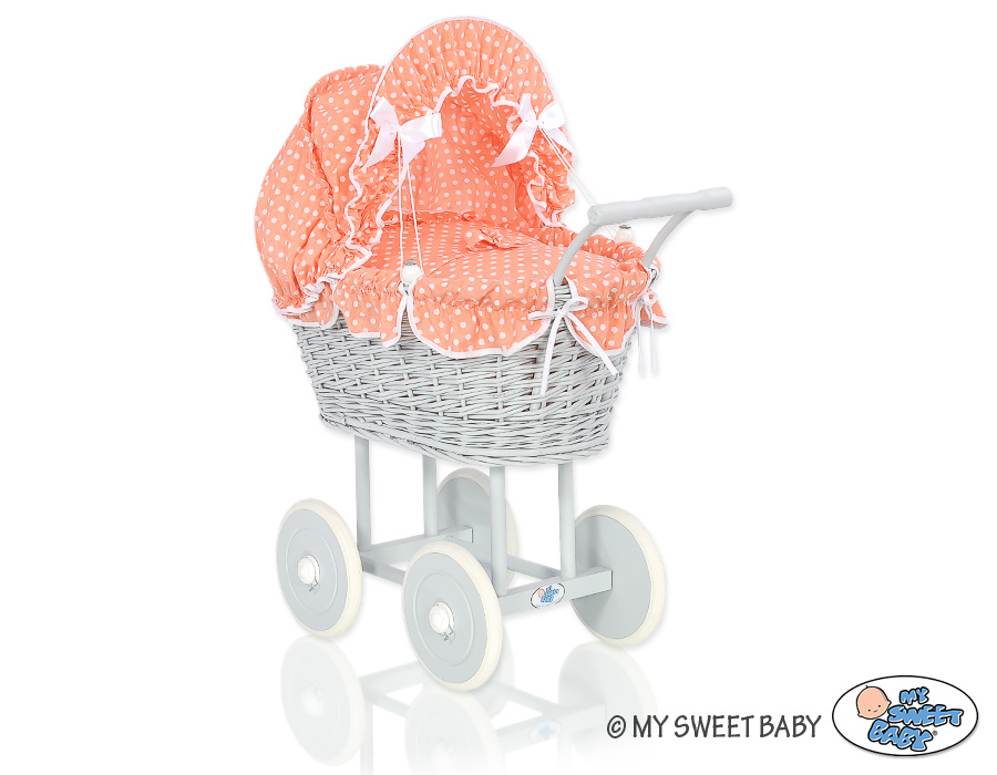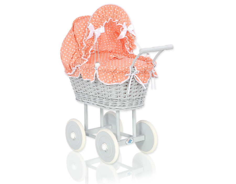 Kleinbaby.nl » Speelgoed Knuffels » Poppenwagens en Speelgoed » Poppenwagen van Riet » Poppenwagen Riet Grijs » Poppenwagen riet met kap Grijs Perzik