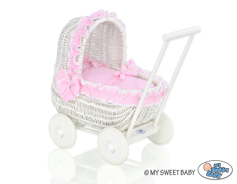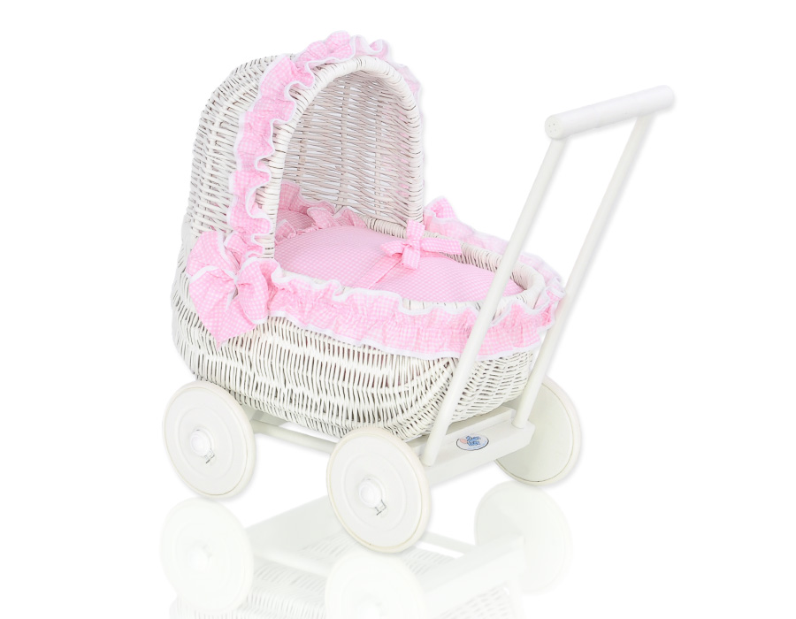 Poppenwagen Riet Roze Wit