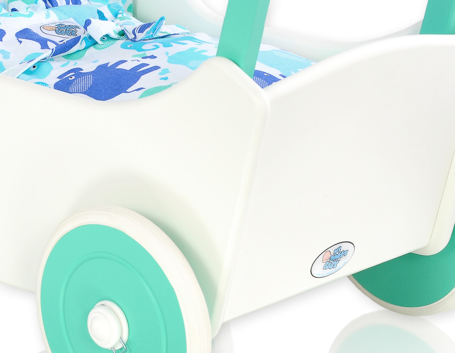 Kleinbaby.nl » Speelgoed Knuffels » Poppenwagens en Speelgoed » Houten Poppenwagen » Poppenwagen van Hout Mint » Poppenwagen van Hout met Dekentje Mint Wit