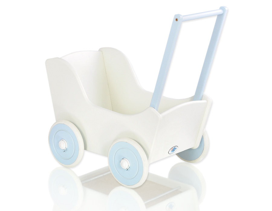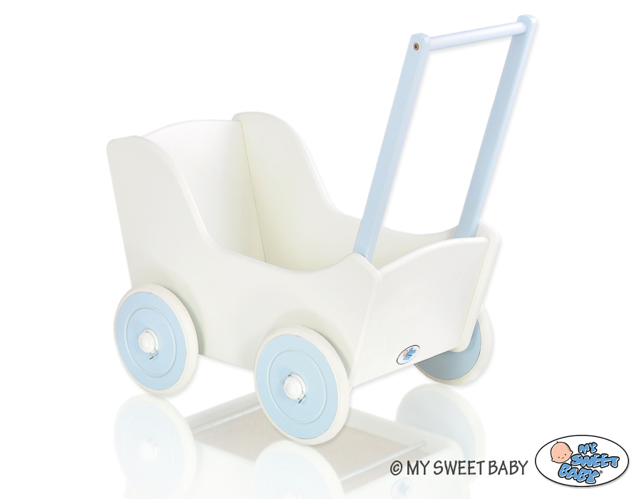 Kleinbaby.nl » Speelgoed Knuffels » Poppenwagens en Speelgoed » Houten Poppenwagen » Houten Poppenwagen Blauw » Poppenwagen van Hout met Dekentje Wit Blauw