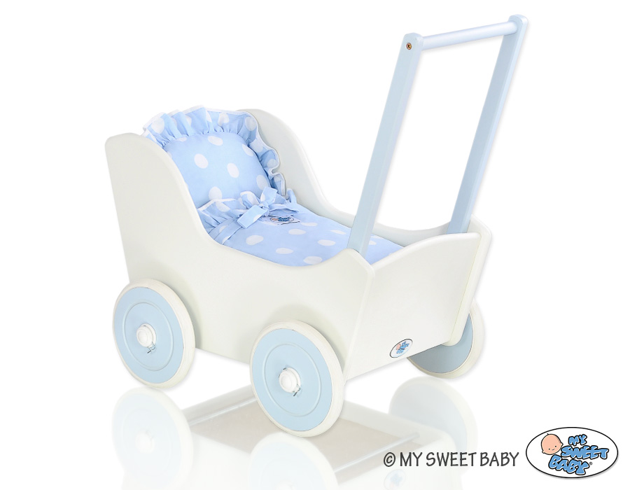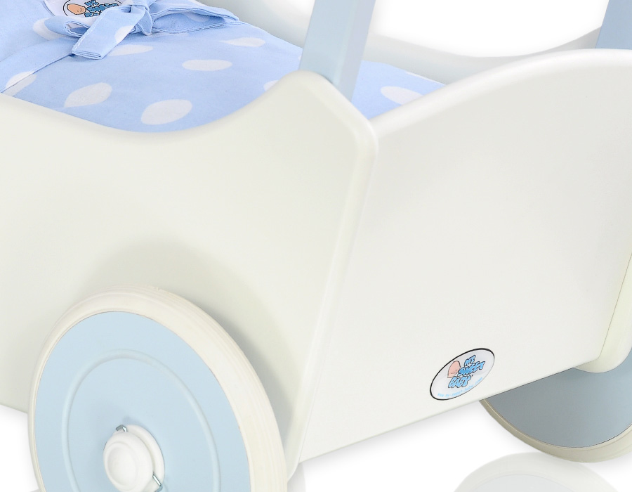 Kleinbaby.nl » Speelgoed Knuffels » Poppenwagens en Speelgoed » Houten Poppenwagen » Houten Poppenwagen Blauw » Poppenwagen van Hout met Dekentje Wit Blauw