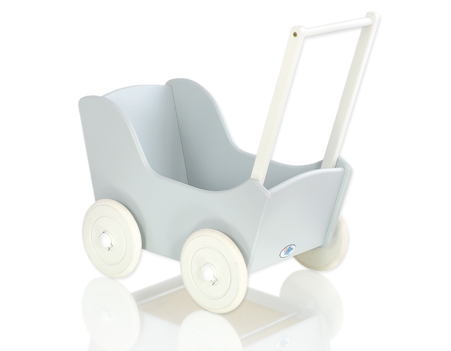 De wielen hebben antislipbanden die geen krassen op de vloer maken. De poppenwagen heeft een verstelbare houten handgreep die op twee hoogtes gemonteerd kan worden (53 of 55 cm vanaf de vloer).