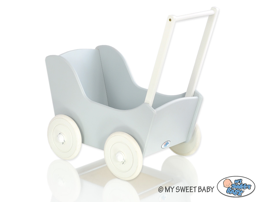 Kleinbaby.nl » Speelgoed Knuffels » Poppenwagens en Speelgoed » Houten Poppenwagen » Houten Poppenwagen Grijs » Poppenwagen van Hout met Dekentje Wit Grijs